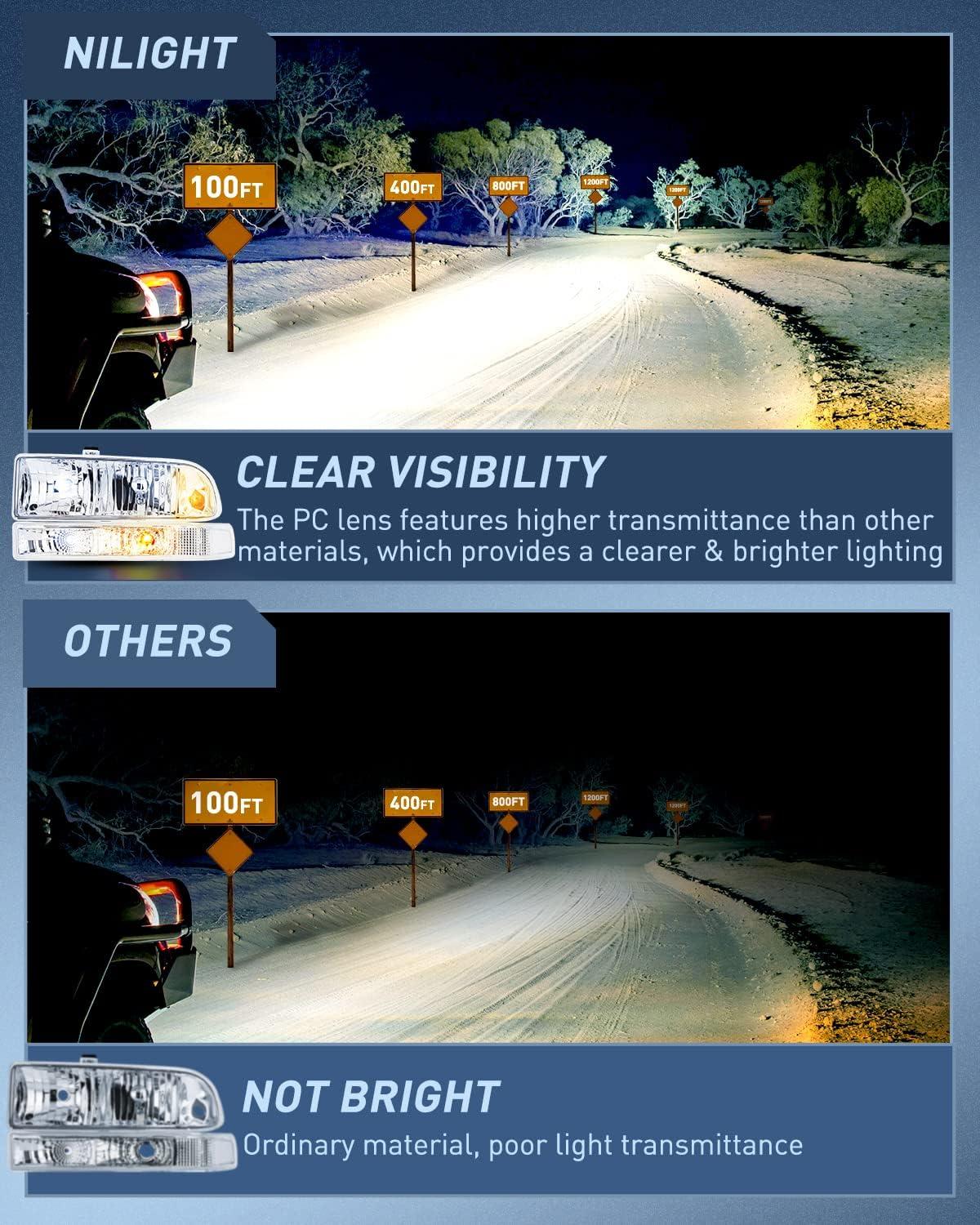 Nilight Headlight Assembly 1998-2005 Blazer 1998-2004 S10 Pickup without Integrated Fog Light Chrome Housing Clear Corner Clear Lens,Headlights Assembly Replacement