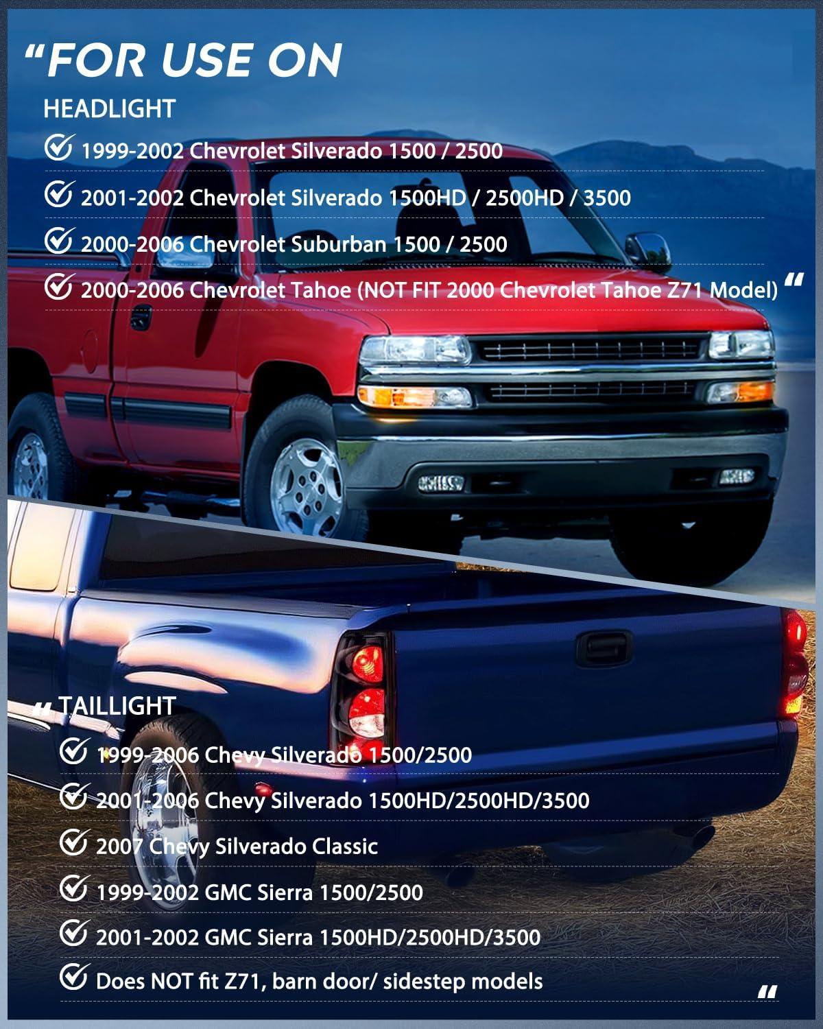 Safe Drive: Our 1999 2000 2001 2002 Silverado headlights provide clearer and longer vision for driver to see the deer, wild animals, falling rocks or other obstacles at night in advance to reduce the possibility of danger