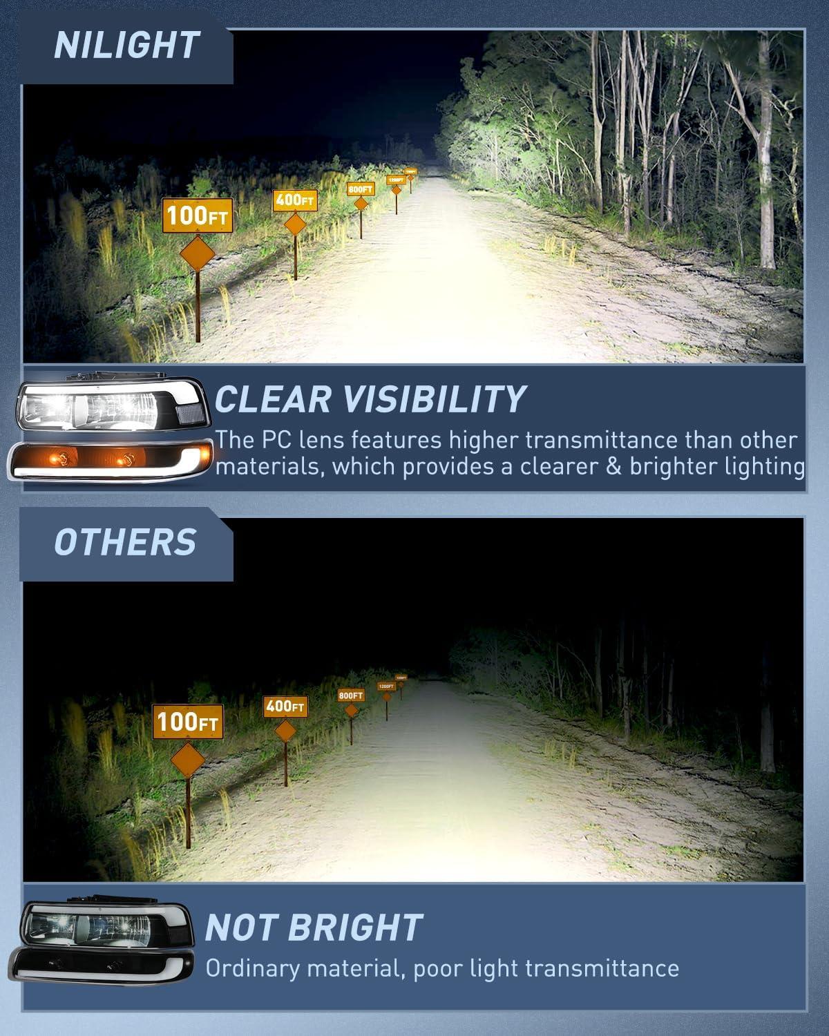 Safe Drive: Our 1999 2000 2001 2002 Silverado headlights provide clearer and longer vision for driver to see the deer, wild animals, falling rocks or other obstacles at night in advance to reduce the possibility of danger