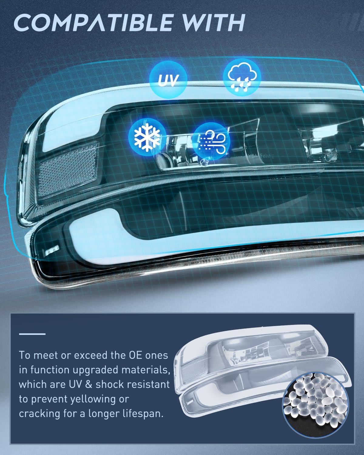 Waterproof: Our 2001 2002 2003 2004 2005 2006 Tahoe headlights are IP65-rated completely sealed to prevent moisture from intruding into the housing. Ventilation Hole regulates temperature to avoid fogging and keep the headlights bright and Clear