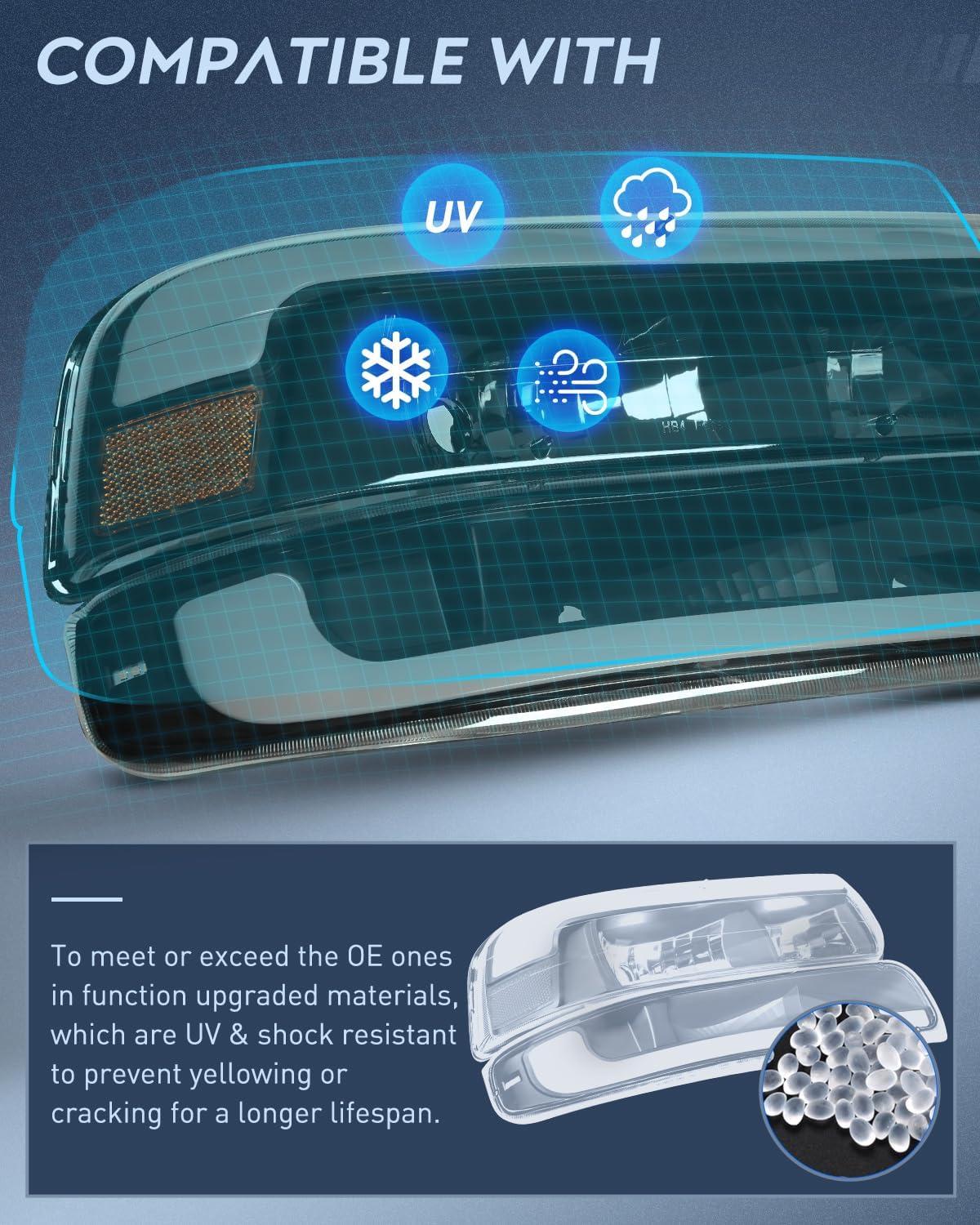 Waterproof: Our 2001 2002 2003 2004 2005 2006 Tahoe headlights are IP65-rated completely sealed to prevent moisture from intruding into the housing. Ventilation Hole regulates temperature to avoid fogging and keep the headlights bright and Clear