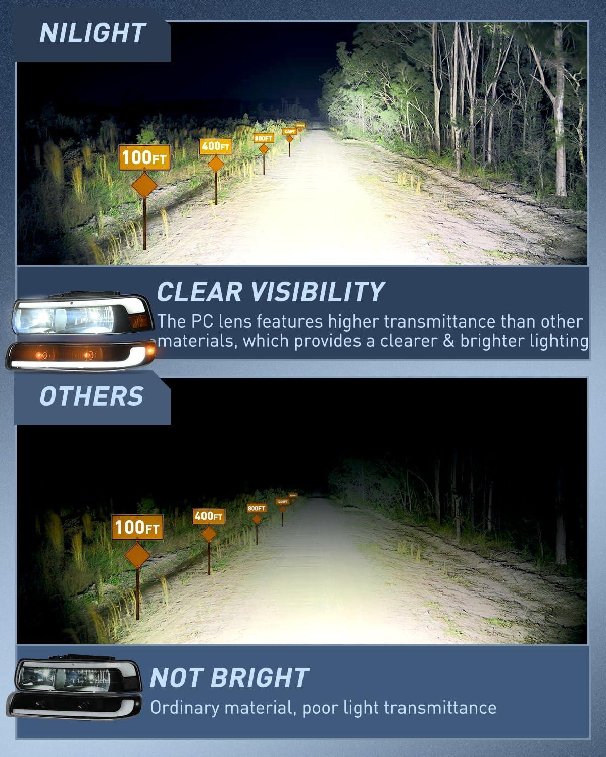 Safe Drive: Our 1999 2000 2001 2002 Silverado headlights provide clearer and longer vision for driver to see the deer, wild animals, falling rocks or other obstacles at night in advance to reduce the possibility of danger