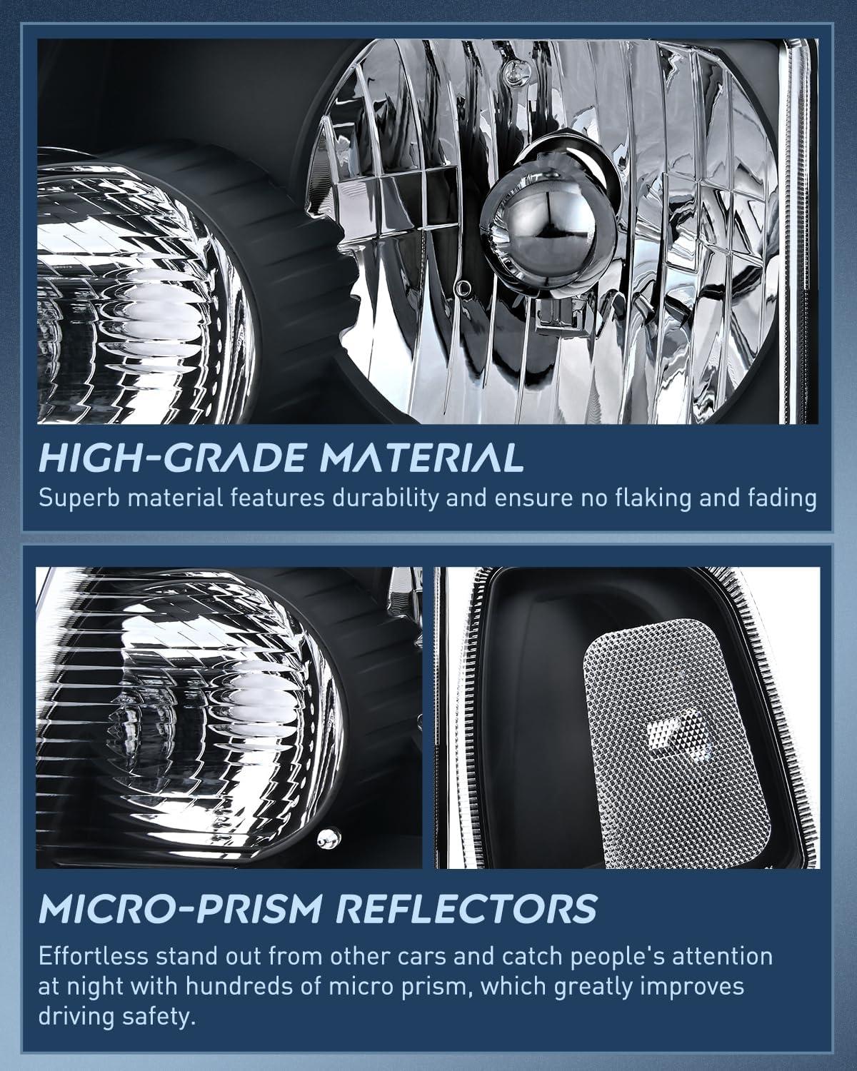 DOT Compliance and safe Driving: To ensure driving safety for you and the oncoming driving circumstance, our 2001 2002 2003 2004 2005 2006 2007 2008 2009 2010 2011 Ford Ranger headlights are DOT & SAE compliant. Our headlights provides clearer and further vision to see the wild animals, falling rocks or other obstacles at night. Reduce the possibility of danger.