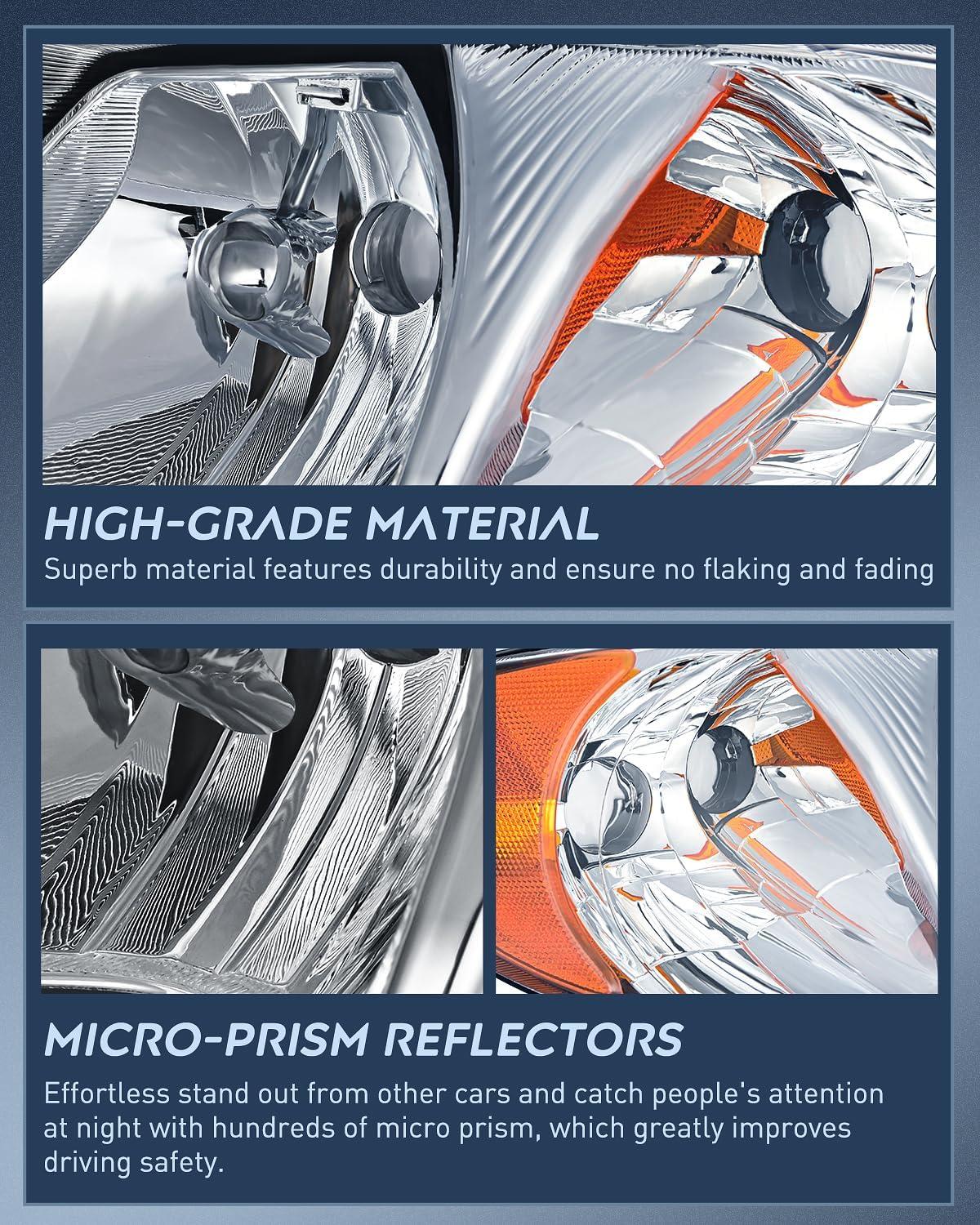 Nilight Headlight Assembly for 2001 2002 2003 2004 2005 2006 2007 Chrysler Town & Country 2001-2003 Voyager 2001-2007 Dodge Grand Caravan Replacement Chrome Housing Amber Reflector(Chrome Housing+ Amber Reflector)