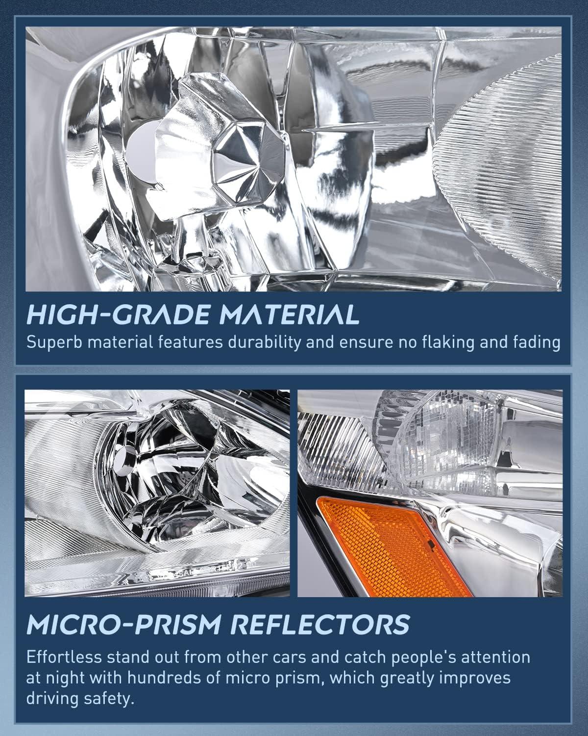 Nilight Headlight Assembly for 2003 2004 2005 2006 2007 Accord Replacement Headlamp Chrome Housing Amber Reflector(Chrome Housing + Amber Reflector)