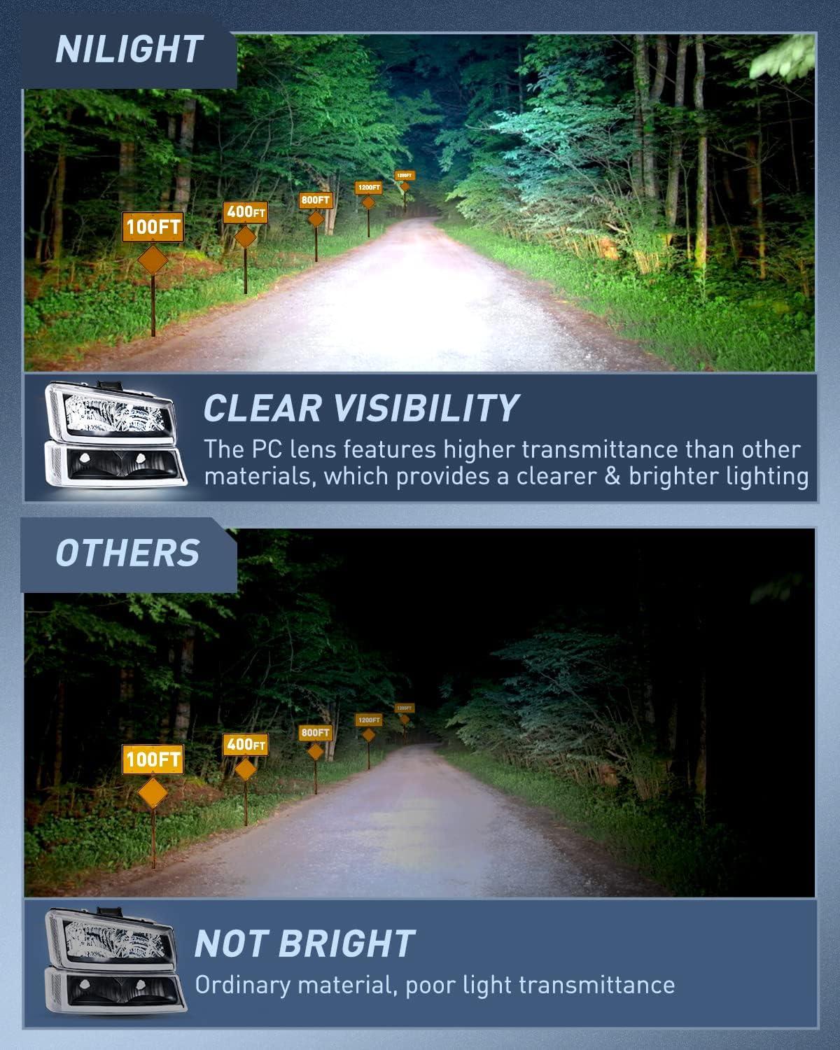 Nilight Headlight Assembly 2004-2006 Avalanche 2003-2006 Silverado 1500 1500HD 2500 2500HD 3500 Headlights Bumper Lamp Set Replacement,Chrome Housing Amber Reflector