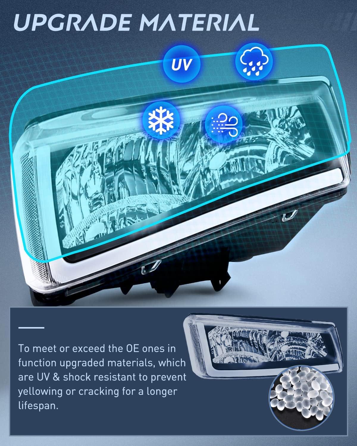 DOT Compliance: Our headlight assembly are DOT & SAE compliant to ensure driving safety for you and oncoming driver. Also, the adjusting screw can assist you to adjust the beam level and make it a perfect fit