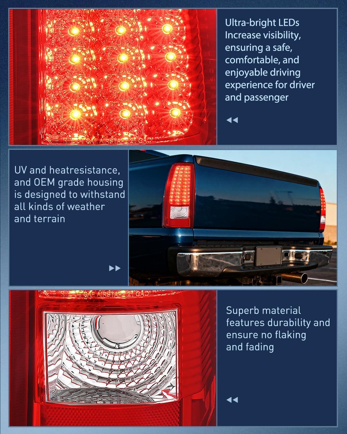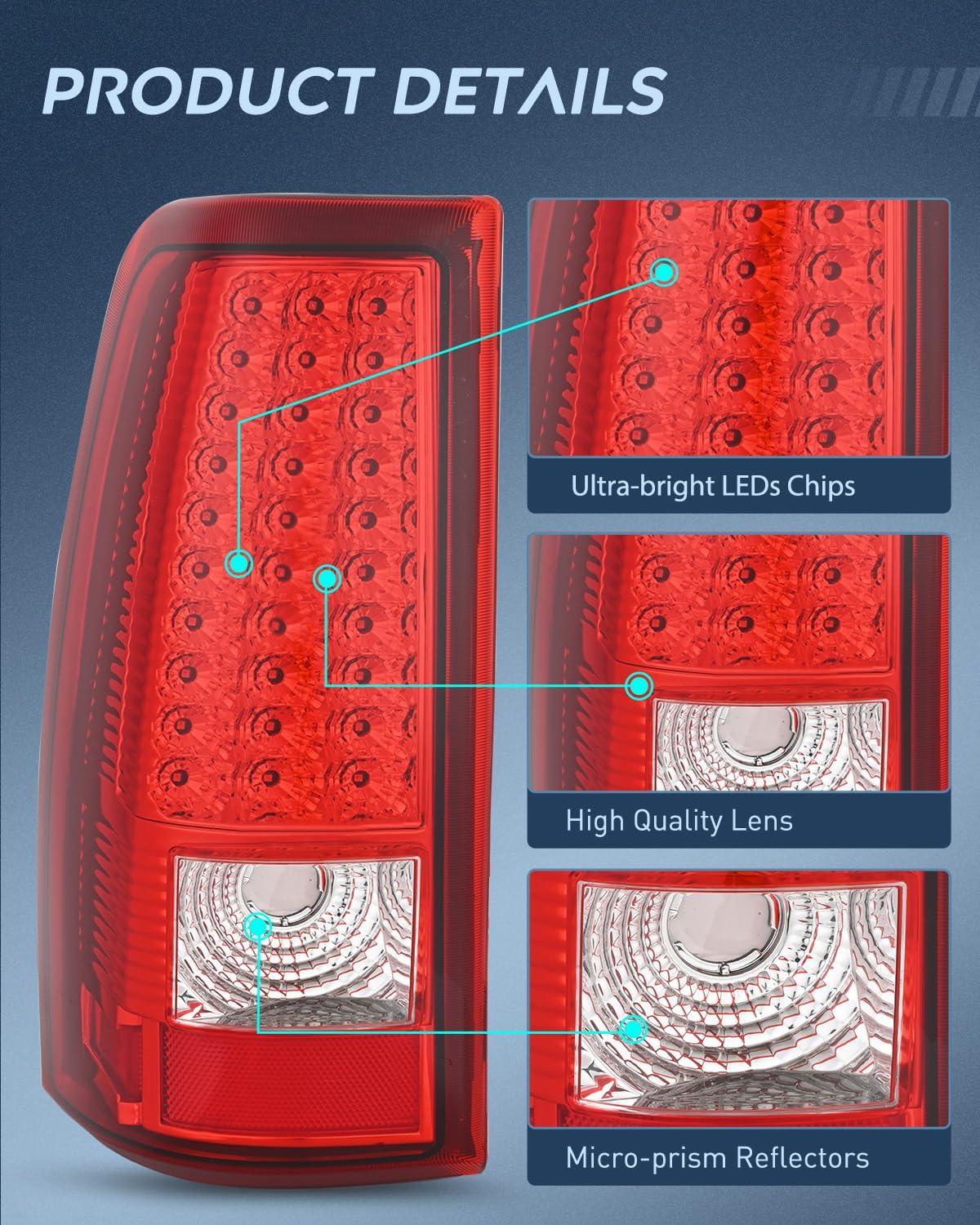 Nilight Headlight Assembly for 2003 2004 2005 2006 Chevy Silverado Avalanche 1500 1500HD 2500 2500HD 3500 Chevrolet Pickup Replacement Headlamp Housing Bumper Lamp Set(LED Red)