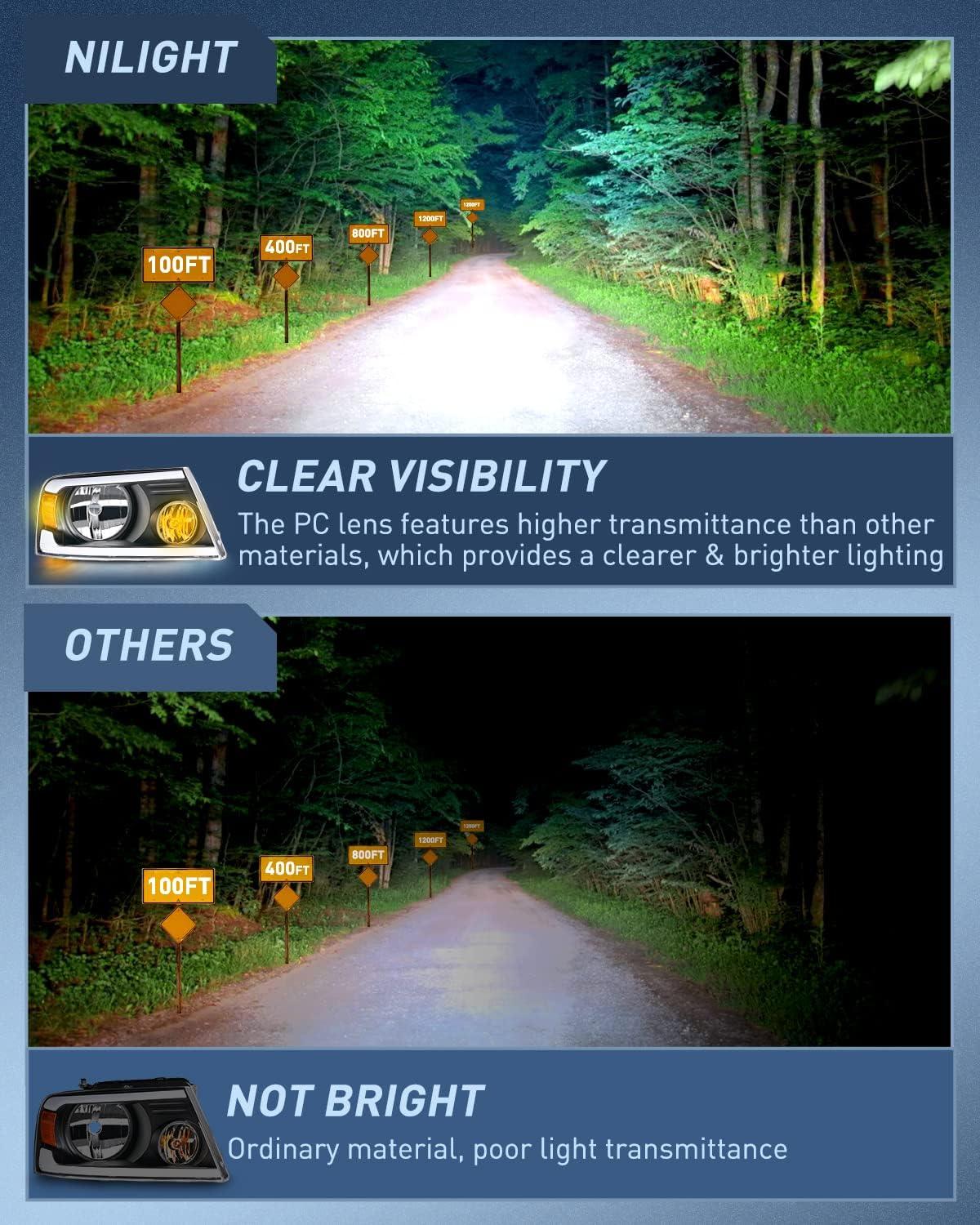 Nilight Headlight Assembly for 2004 2005 2006 2007 2008 Ford F150 Pickup /2006-2008 Lincoln Mark LT Passenger Driver Side Black Housing Clear Reflector Lens Headlamp Replacement(Black Housing+ Amber Reflector DRL)