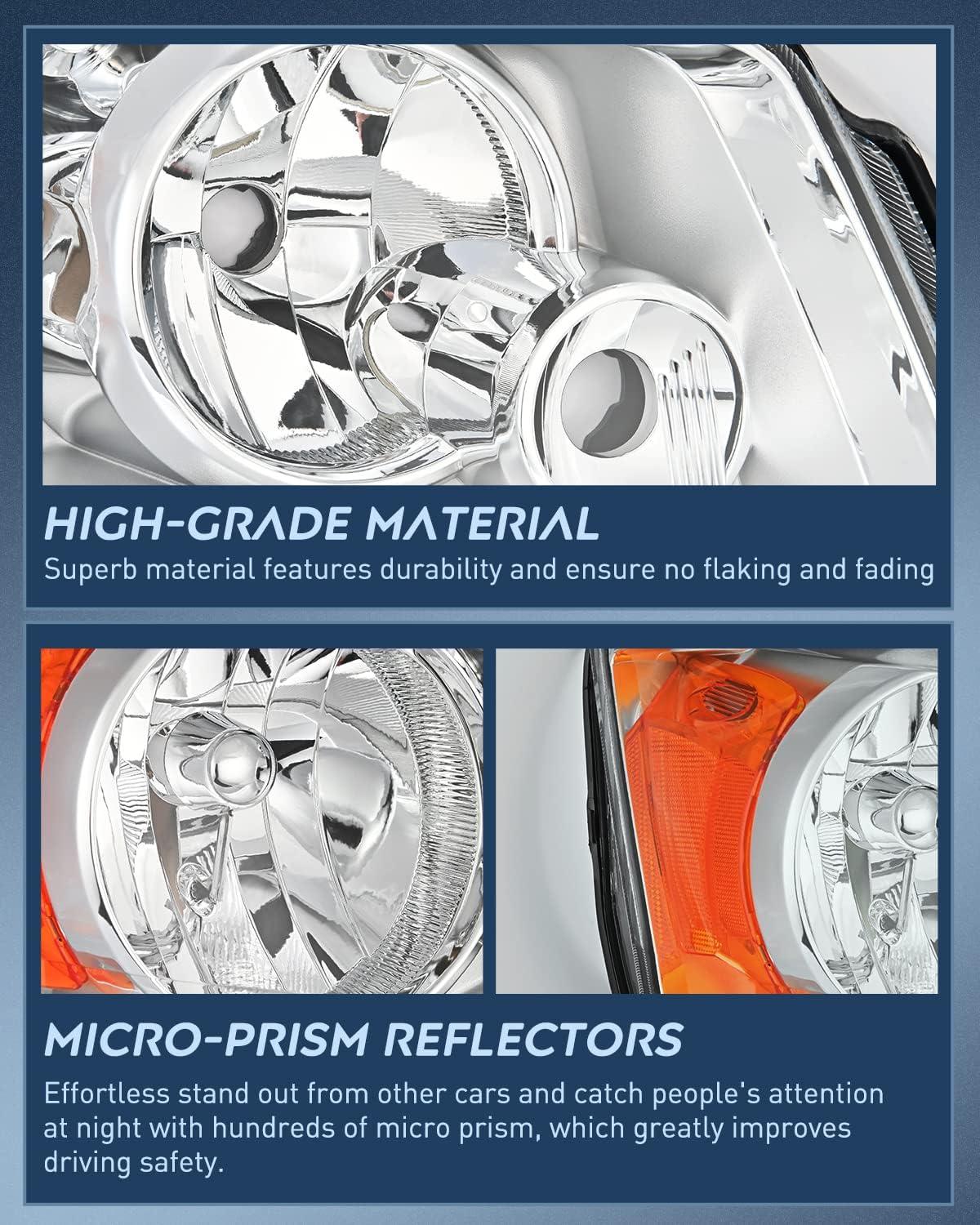 Nilight Headlight Assembly for 2011 2012 2013 2014 2015 2016 2017 2018 2019 Dodge Grand Caravan 2008-2016 Chrysler Town & Country Replacement Headlamp Black Housing Amber Reflector(Chrome Housing + Amber Reflector)