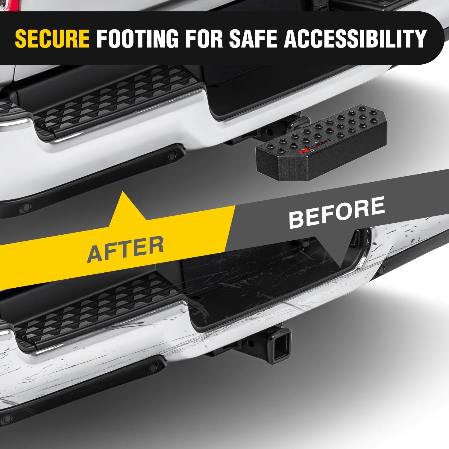 USER-FRIENDLY DESIGN:With slip-proof design and free pin lock & stabilizer included.Nilight hitch step bar provides a secure and comfortable step for you