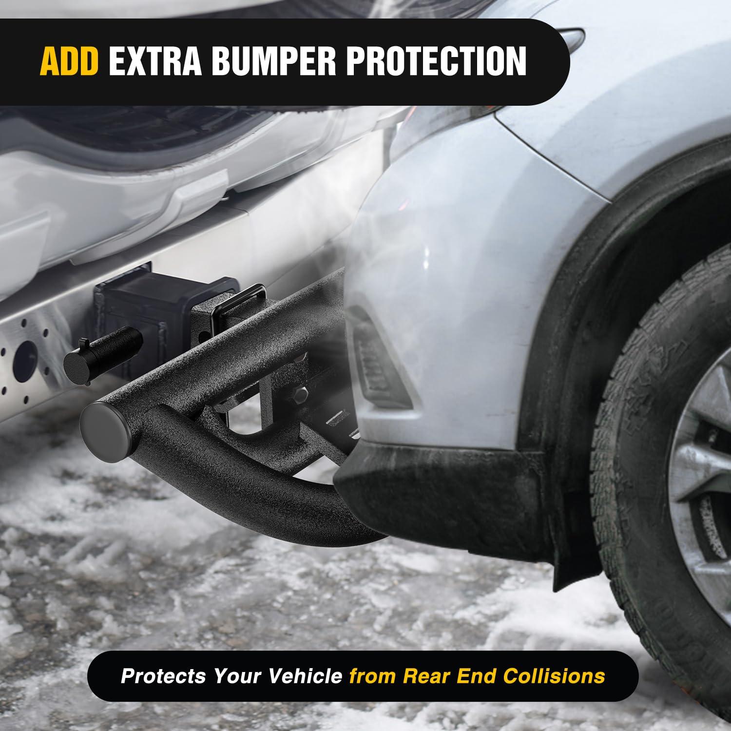 STURDY AND TOUGH:This bumper guard procter is made with heavy-duty 2 inch diameter and 0.120inch wall thickness tubes, Dual stage powder coated textured black finish