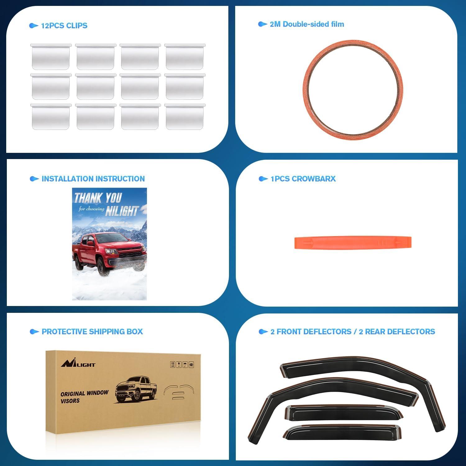 Nilight Window Visor Compatible with Chevy Silverado 1500/Avalanche 2007 2008 2009 2010 2011 2012 2013 GMC Sierra 1500/Silverado/Sierra 2500-3500HD Crew Cab Yukon XL in Channel Rain Guards(Chevy Blazer 2019-2025)