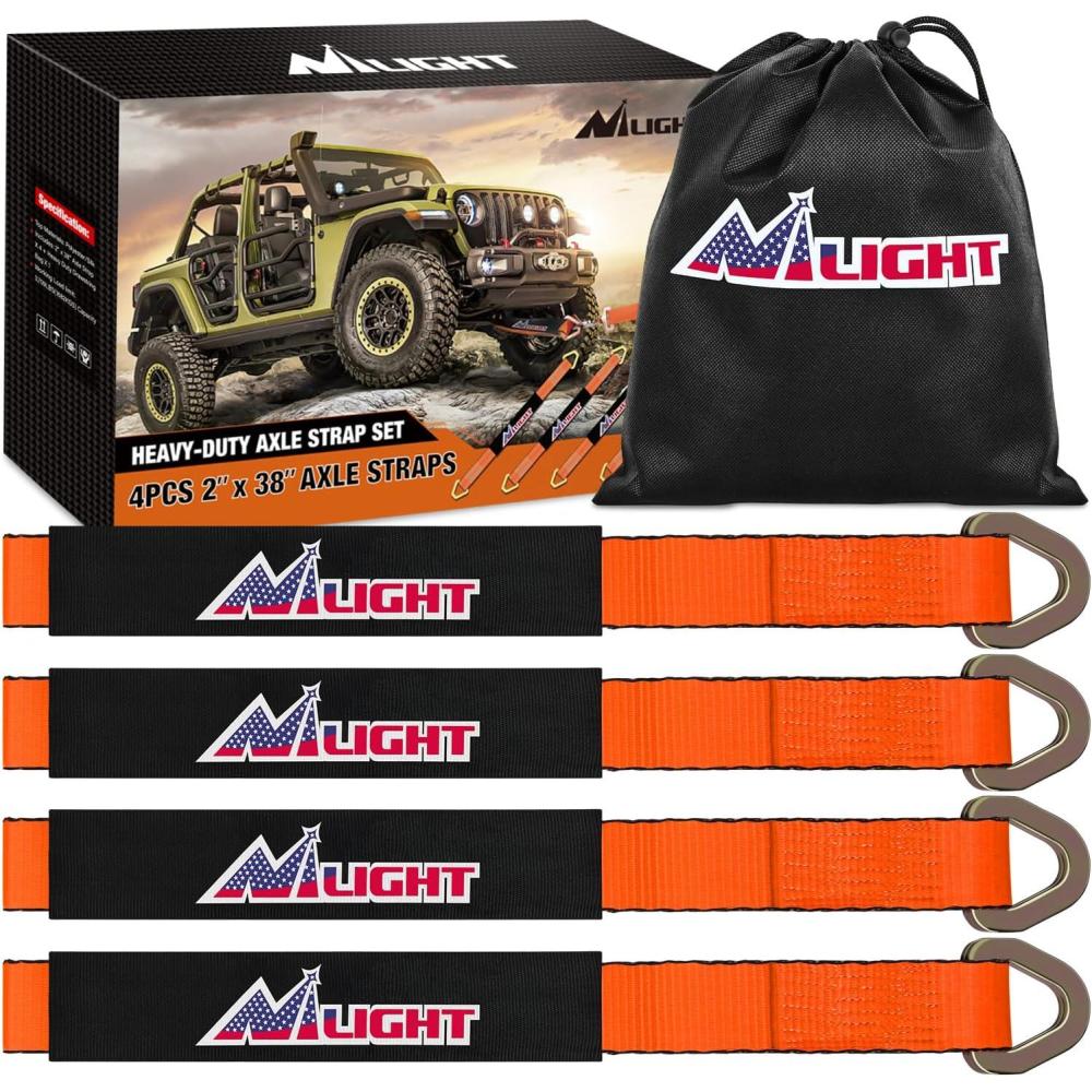 Nilight Kinetic Recovery Rope 33000 LBS 1″ x 30ft Snatch Strap Heavy Duty Offroad Towing Starp Kit Vehicle Recovery kit for UTV ATV SUV Truck Car Jeep Tractor(2inx 38in Axle Tie Down Straps 4Pcs)