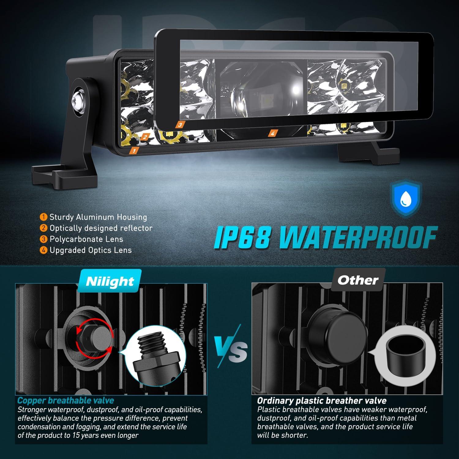 Nilight LED Light Bar 14 Inch 21LED Dual Row Spot Flood Combo Screw-Less Night Vision Off Road Driving Lights w/16AWG Rocker Switch Wiring Harness Kit(8Inch 9Led Light +Wiring Kit)