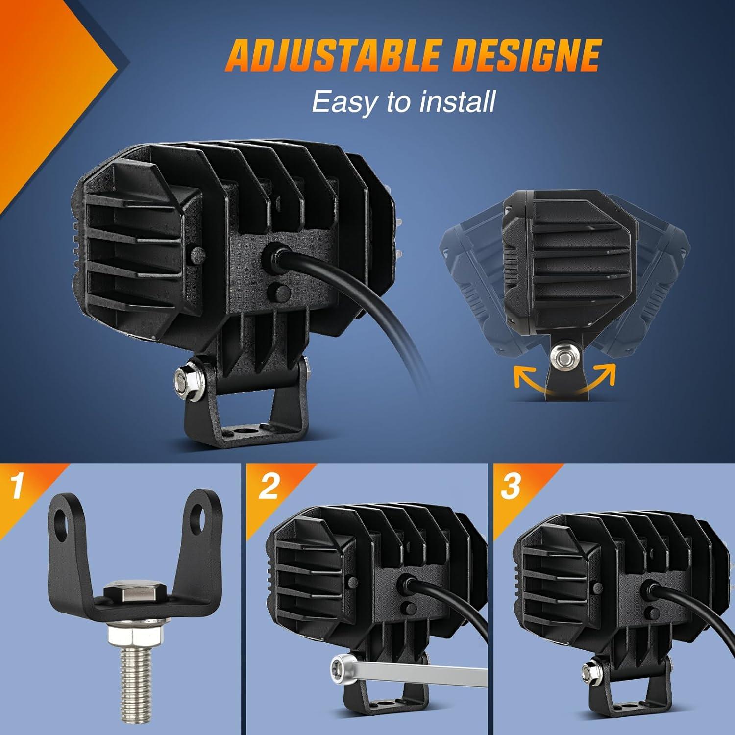 Nilight 2PCS 3Inch Motorcycle Led Pods 1300LM Built-in EMC Driving Light Super Spotlight Offroad Fog Auxiliary Lamp for Motorbike SUV ATV Truck Boat Tractor Forklift(Amber)