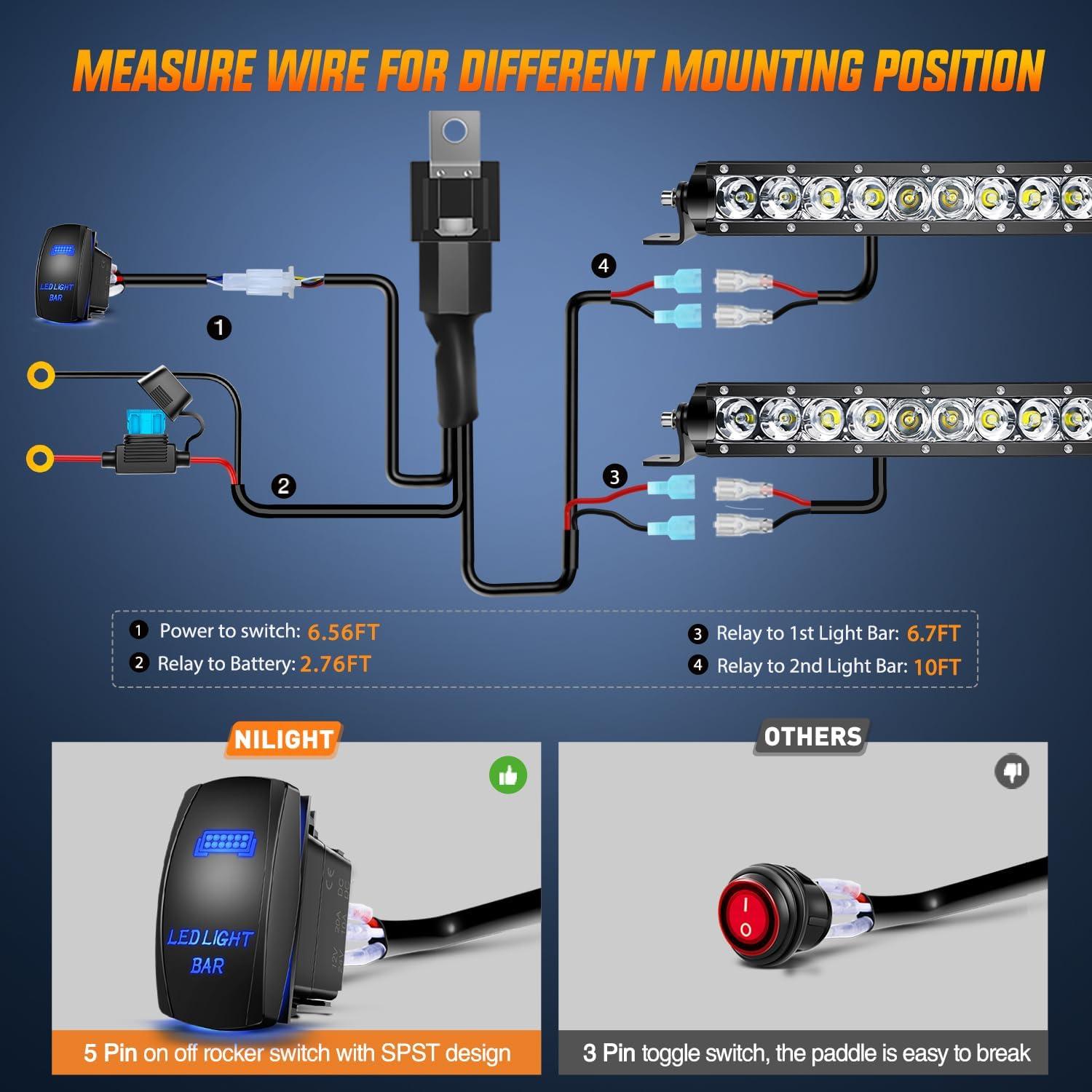Nilight 2PCS 11 Inch 50W Super Slim Flood Led Light Bar 5000LM Driving Fog Light Single Row Off Road led Lights for Jeep – 2 Style Mounting Brackets, 2 years Warranty(50W Light +Wiring Harness)