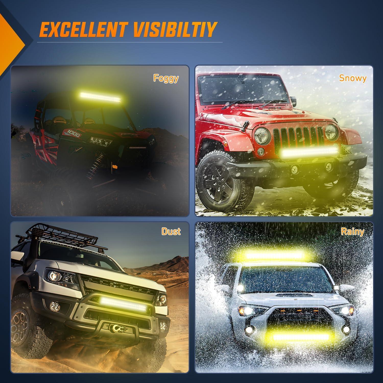 WIDE APPLICATION: The light bar is universal fit, which is perfect for compatible for almost all 4×4, Trucks, Cars, Motorcycles, SUVs, ATVs, Boats, forklift and special vehicle (fire engine, police cars, rescue vehicle, communication vehicle, and military command vehicle). It can also work great as driving light, fog light, or for emergence use