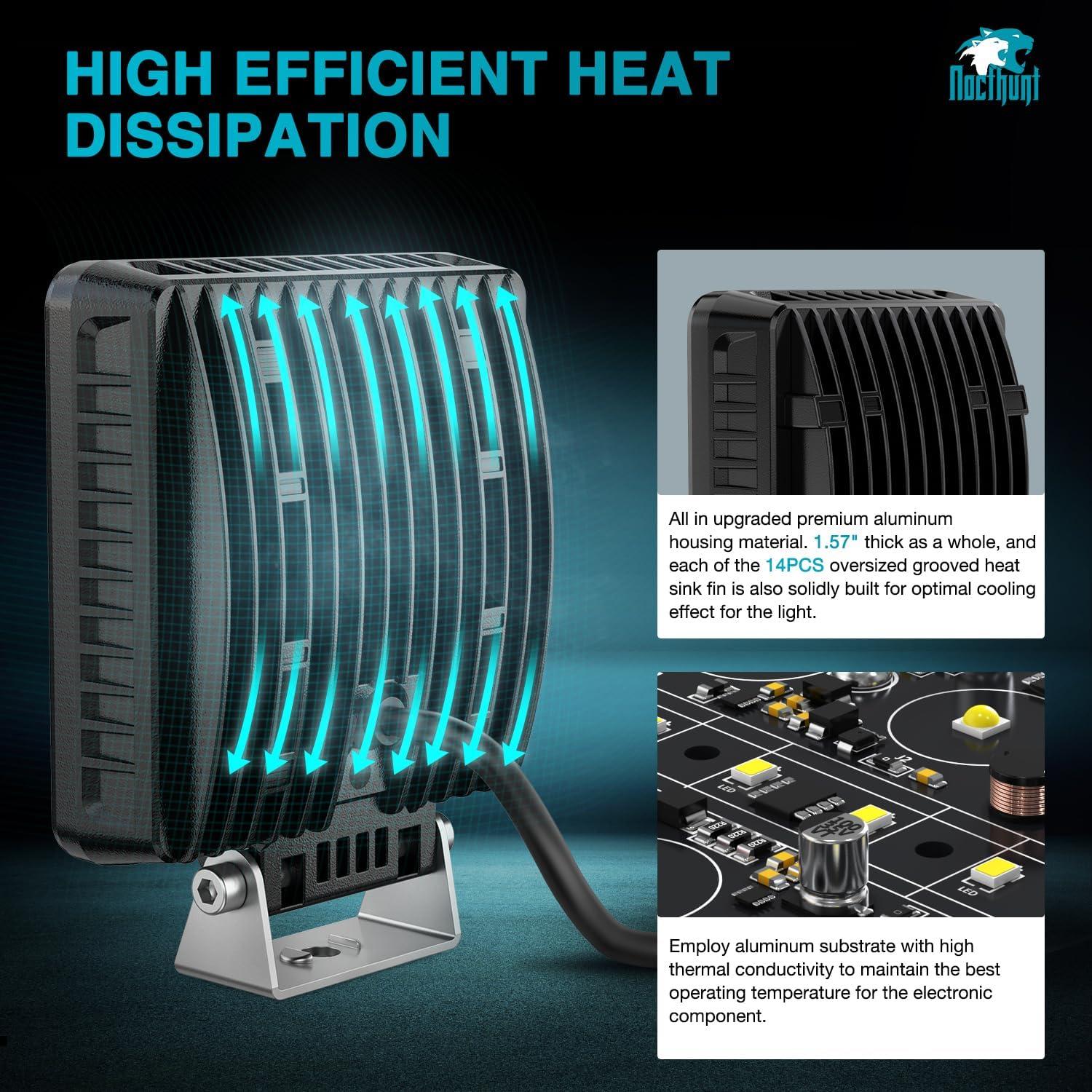 【Wide Illumination Range】Upgraded with specially developed wide-angle reflector cup for homogeneous illumination, an effective diffused flood light source to cover a wider range. Allows you to be as agile as a leopard at night, quickly discover obstacles and wild animals, and avoid accidents. It is your good partner for off-roading