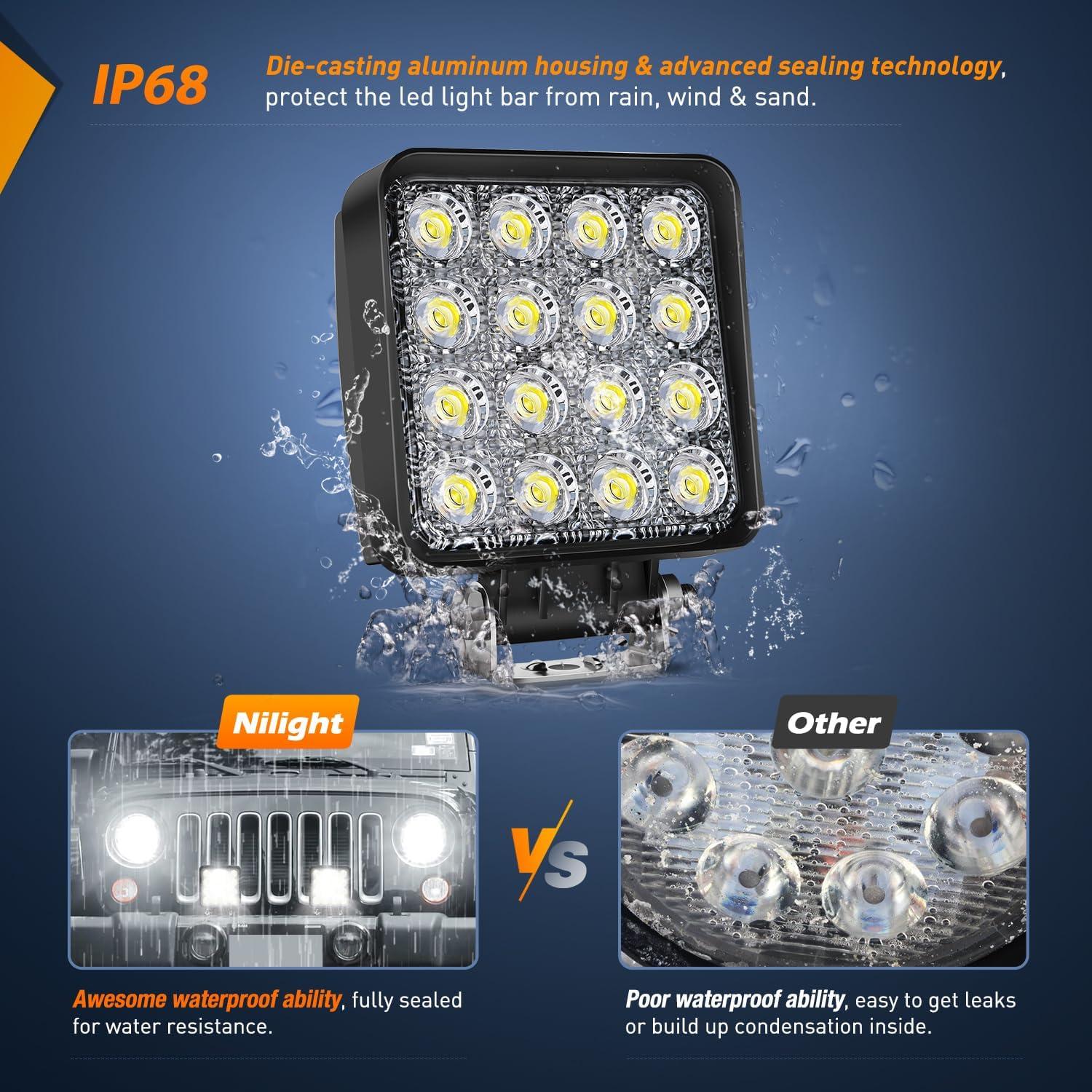Nilight Led Pods 2Pcs 18W 1260LM Flood Off Road Lights Super Bright Driving Work Fog Lamps for Trucks Pickup Golf Cart SUV ATV UTV 4×4 Van Camper Boat(48W Ranger Backup Light)