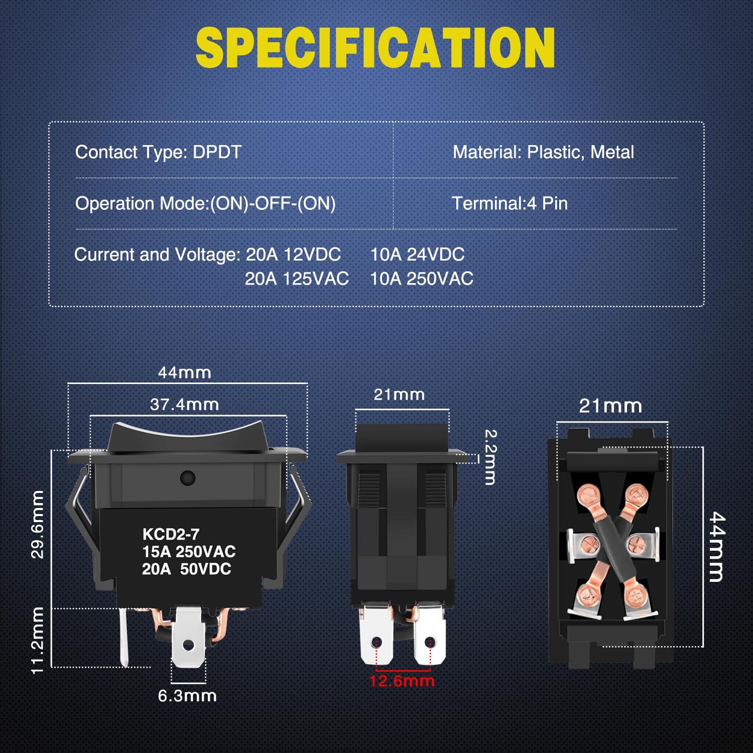 Easy to install and use: 7PIN (ON)-OFF-(ON) rocker switch with DPDT design (double pole double Throw), rated at 20AMP/12VDC and 10AMP/24VDC. Can be installed or replaced on the Nilight rocker switch panels. It is easy and simple to set up. Can control 2 loads.