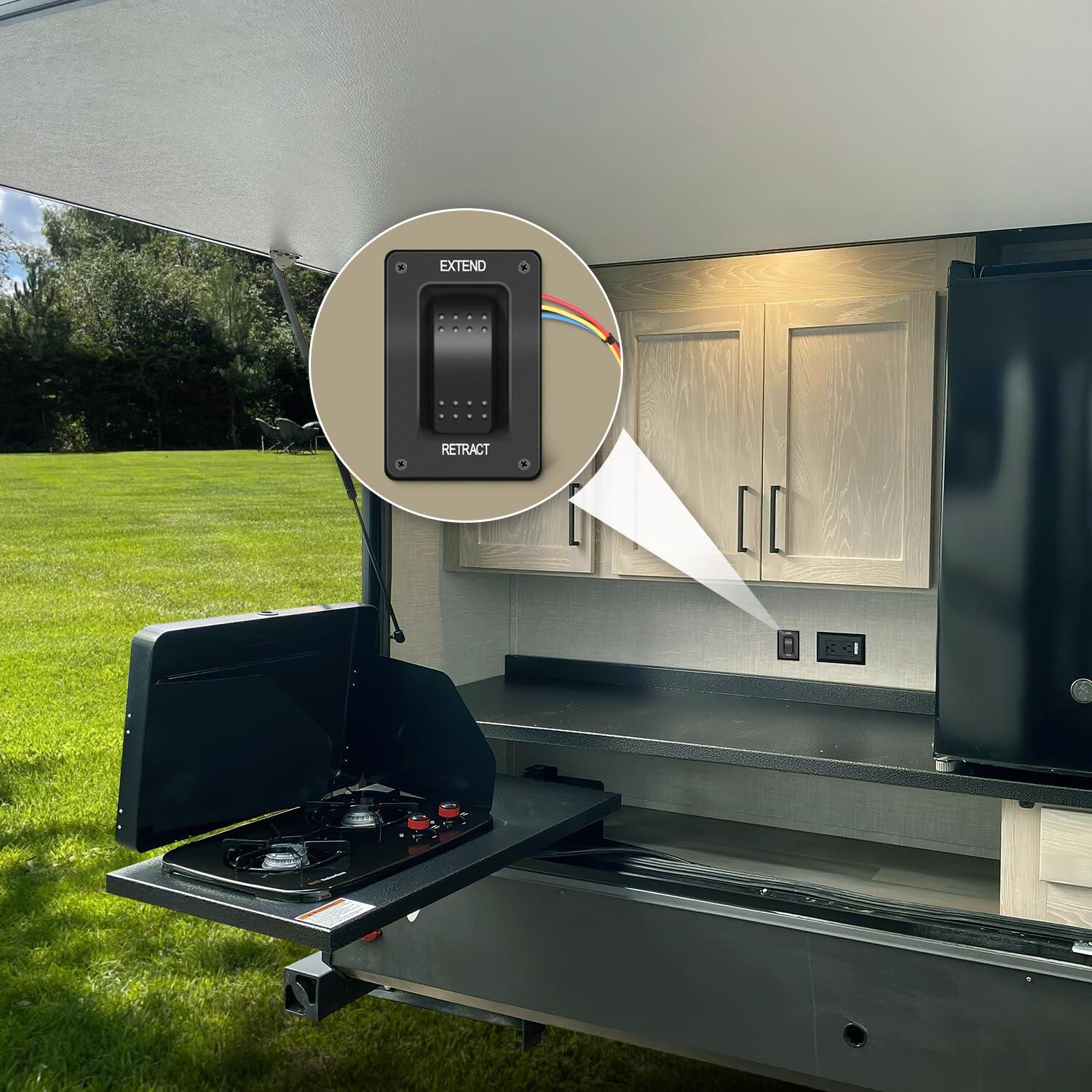 Wide Application: Can be used to replace Rotary, Drum, Cable and used to control Winch,Pump,Reclining Media Room Seats,Auto Bilge Pump. Fit for all cars, SUVs, ATVs, UTVs, Yachts, Trailers,Campers, Caravans etc; Also a great replacement for RV or Electric Trailer Power, Travel Trailers and slideout Power awning switches. Momentary Automatic Reset action, Resetting returns to off when released. Simply connect power and ground and two DC motor leads and the switch will reverse the motor direction