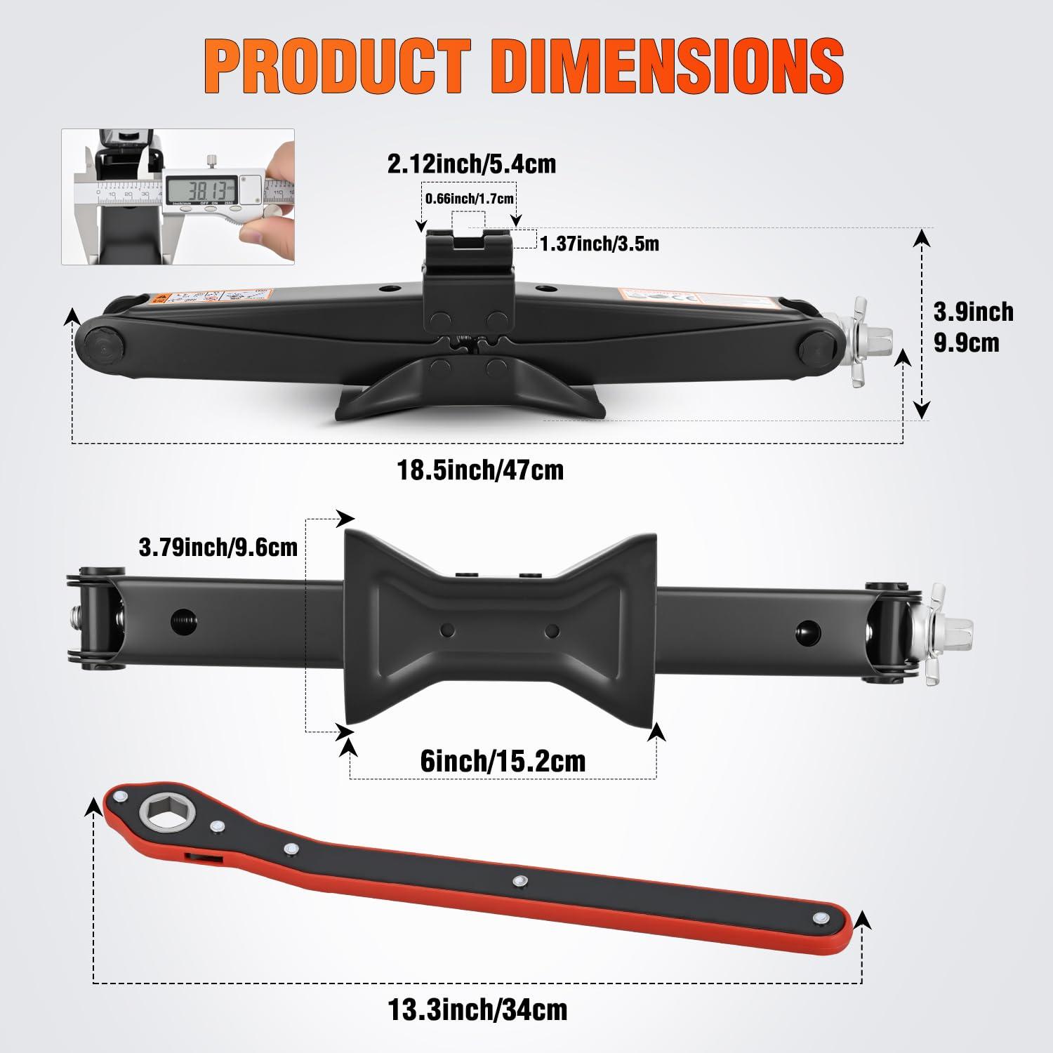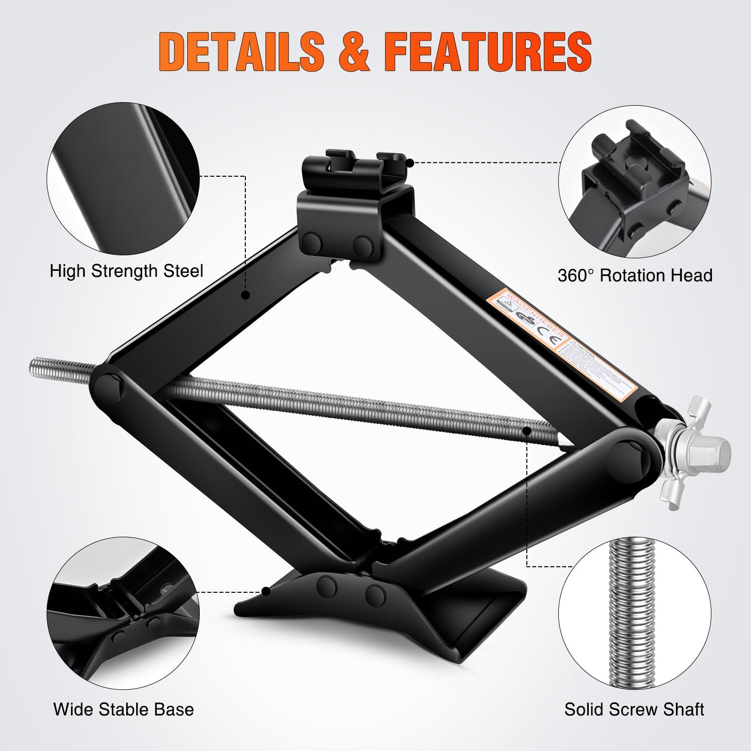 Nilight Scissor Jack Kit for Car 1.5 Ton(3307 lbs), Heavy Duty Portable Steel Scissor Lift Jack Car Tire Changing Kit with Ratchet & Lug Wrench for Sedan SUV MPV, 3.9”-13.6” Lifting Range, Black(2T with Crank Handle Black)