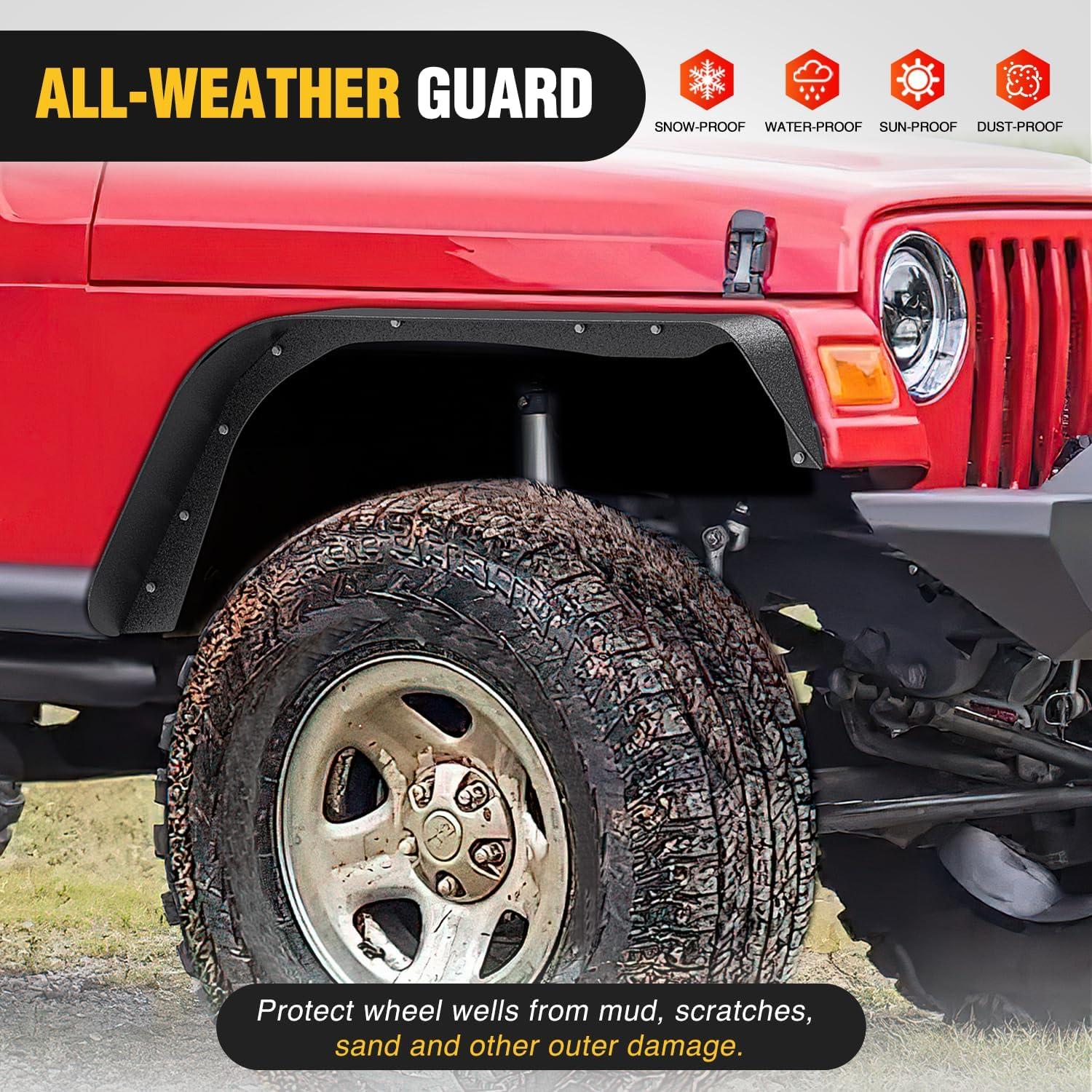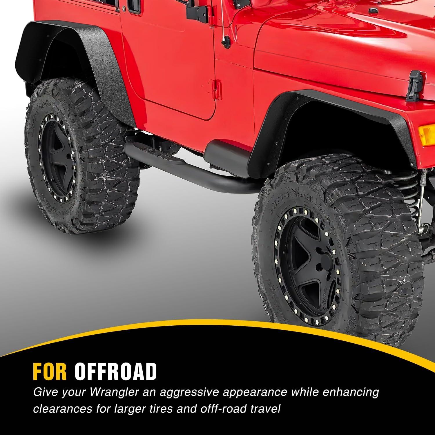 FOR OFFROAD: Give your Wrangler an aggressive appearance while enhancing clearances for larger tires and off-road travel. Protects vehicles from on & off-road debris