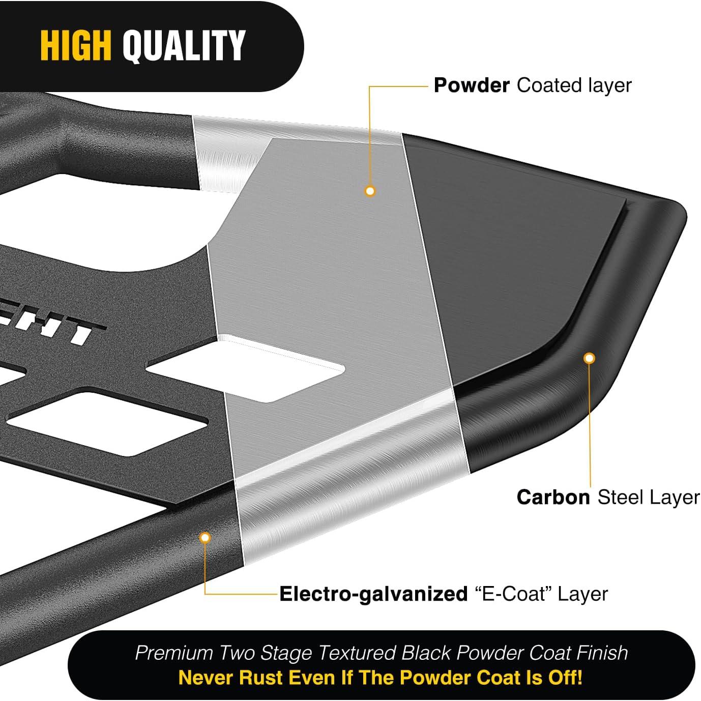 STEEL CONSTRUCTION – Made of durable 1/8″ steel sheet and 1 1/4″ x .080 wall steel tubing. Textured black powder coat finish. Built-in OE quality latch assembly
