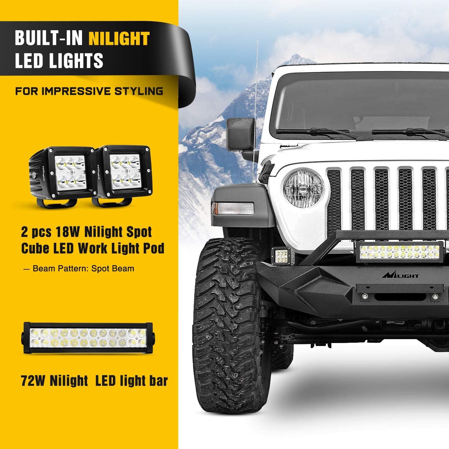 Nilight Off Road Front Rear Tubular Doors with Side View Mirrors Compatible with 2018 2019 2020 2021 2022 2023 Wrangler JL 2020 2021 2022 2023 Gladiator JT 4 Door Only, 2 Years Warranty(Front Bumper 2018-2025 JL)