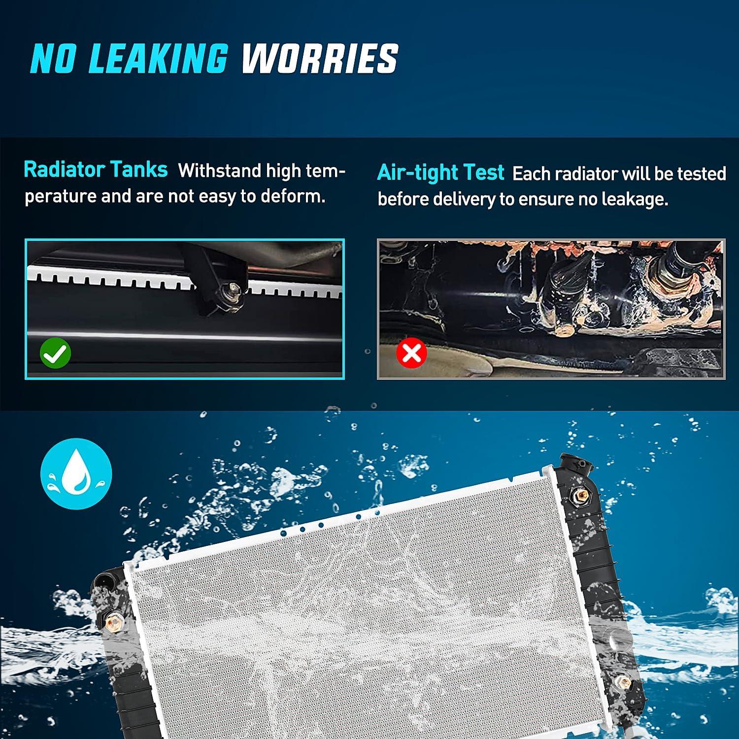 【Performance】Our radiators are 100% leak tested to prevent coolant loss and keep the engine running efficiently. Increases the boiling point of the engine coolant to maintain efficiency. Maintains the pressure of the cooling system to keep the vehicle safe and well sealed.