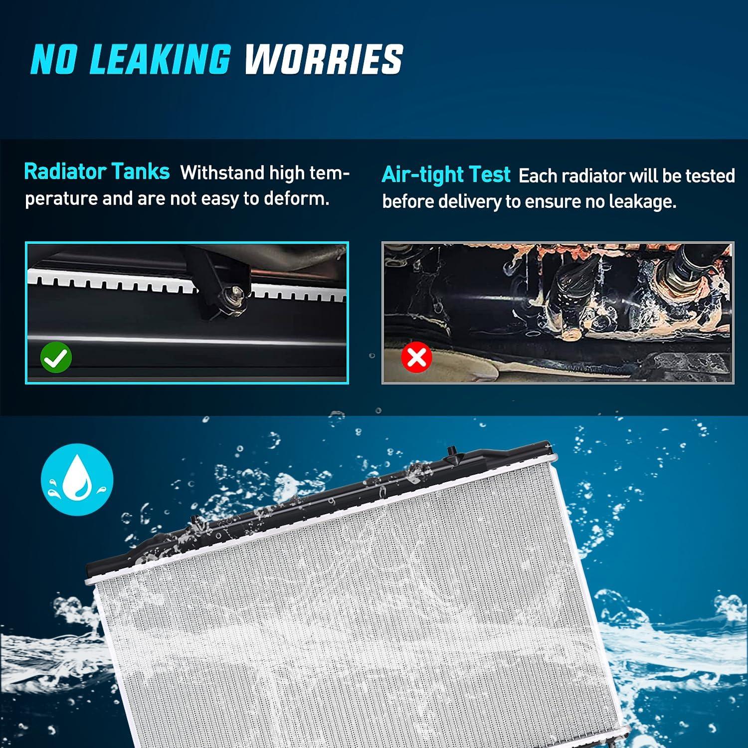 【Performance】Our radiators are 100% leak tested to prevent coolant loss and keep the engine running efficiently. Increases the boiling point of the engine coolant to maintain efficiency. Maintains the pressure of the cooling system to keep the vehicle safe and well sealed.