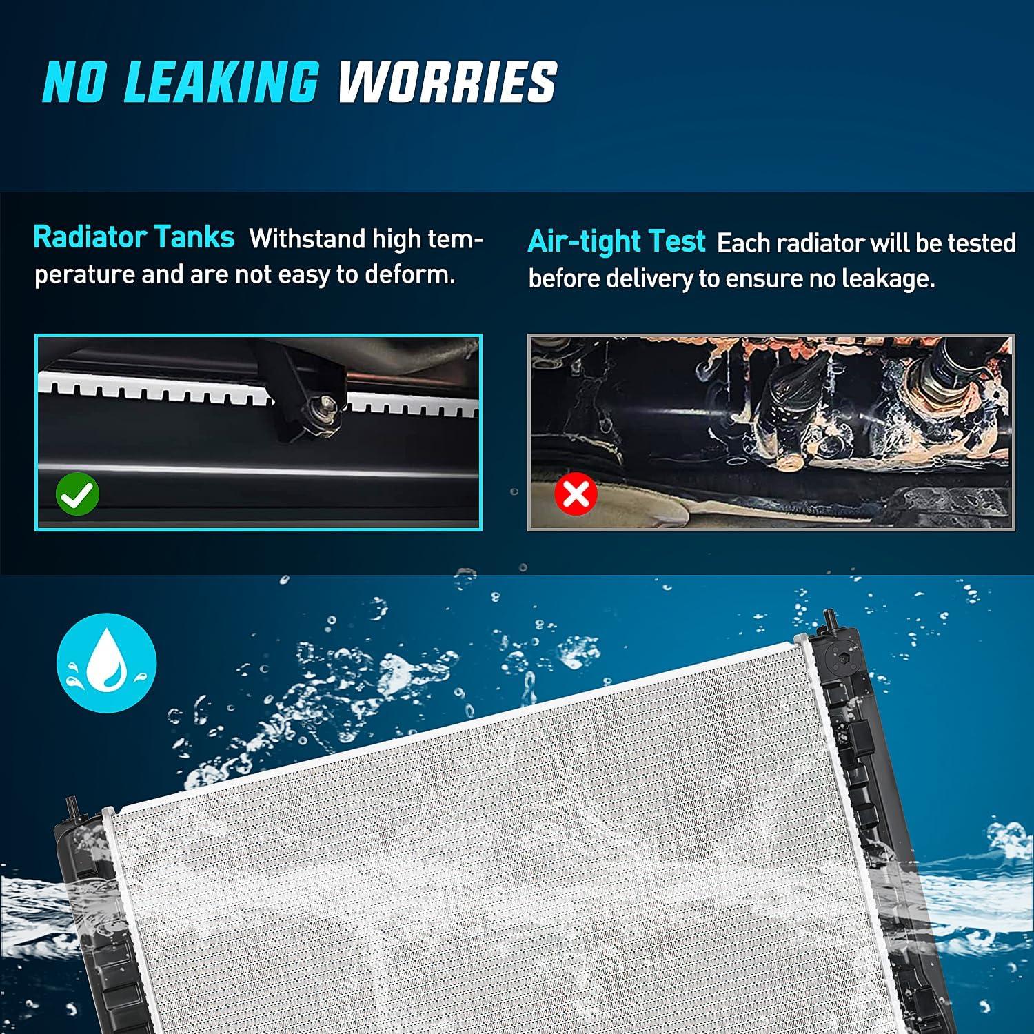【Performance】Our radiators are 100% leak tested to prevent coolant loss and keep the engine running efficiently. Increases the boiling point of the engine coolant to maintain efficiency. Maintains the pressure of the cooling system to keep the vehicle safe and well sealed.