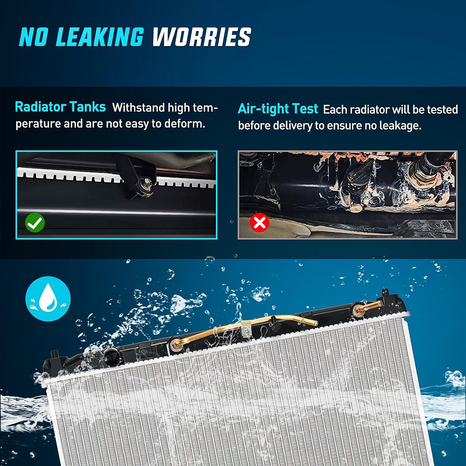 【Performance】Our radiators are 100% leak tested to prevent coolant loss and keep the engine running efficiently. Increases the boiling point of the engine coolant to maintain efficiency. Maintains the pressure of the cooling system to keep the vehicle safe and well sealed.