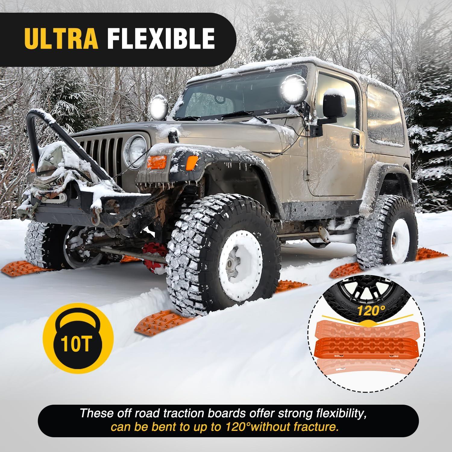 Ultra Flexibility: The traction boards are made of durable and high-impact nylon to deliver strongest traction and durability, which can be bent without fracture
