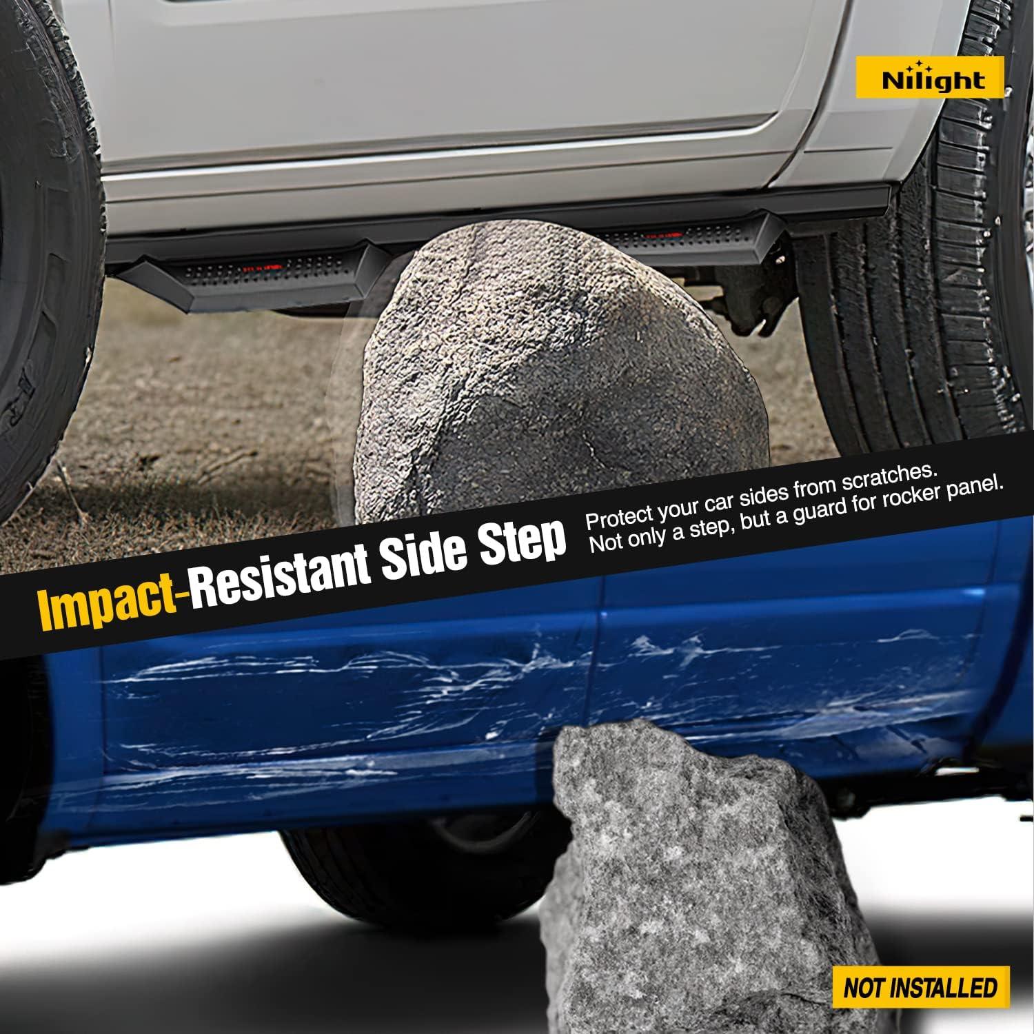 【Non-slip & Drop-down Design】- Designed with 4 Inch drop and 6 Inch width step, raised form a non-slip effect, crafted laser cutting and stamping forming technology for you easier and safer to get on and off.