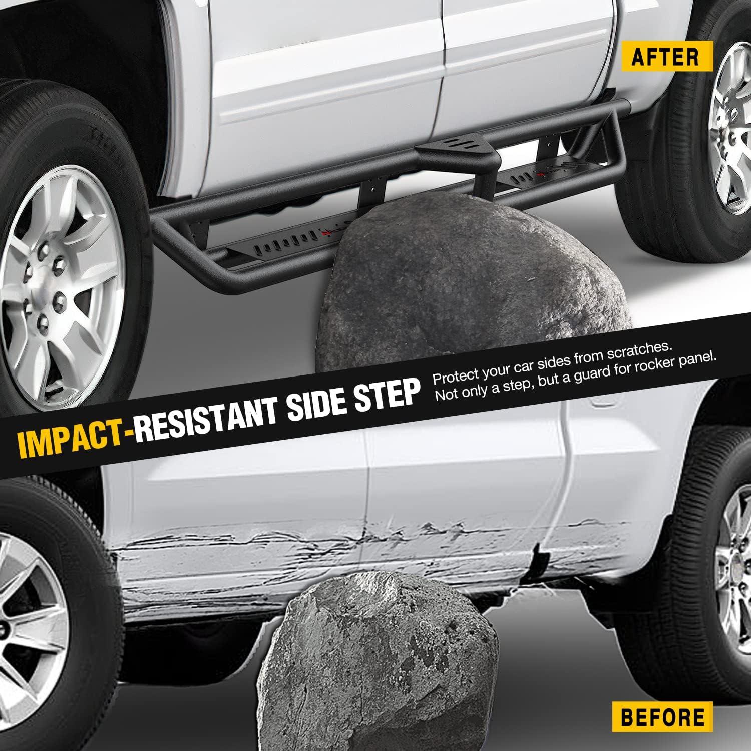 【Non-slip & Drop-down Design】- Designed with 4 Inch drop and 6 Inch width step, raised form a non-slip effect, crafted laser cutting and stamping forming technology for you easier and safer to get on and off.