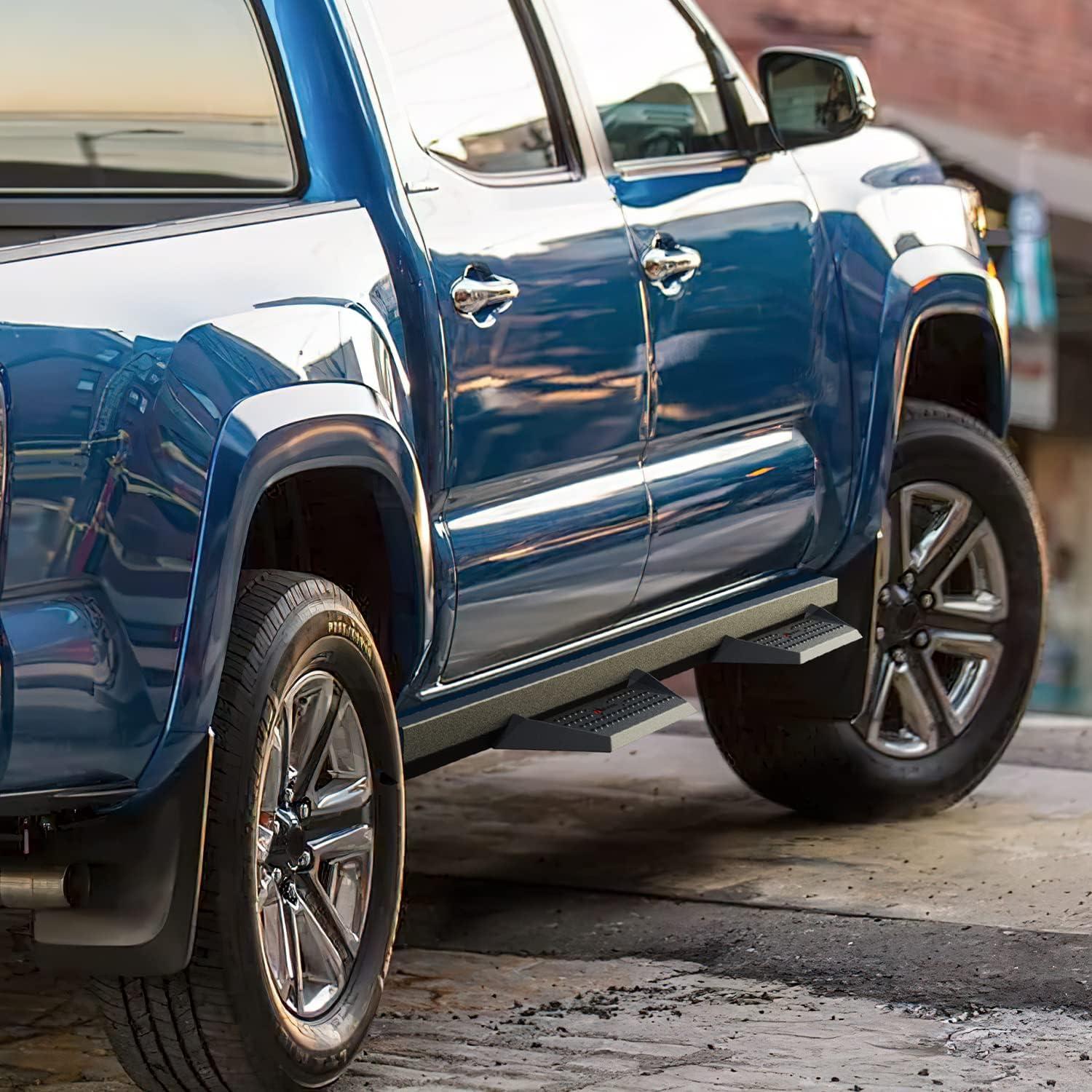 Non-Slip & Drop-down Design: Designed with 3.6 Inch drop and 4 Inch width step, raised form a non-slip effect, crafted laser cutting and stamping forming technology for you easy and safe to get on and off