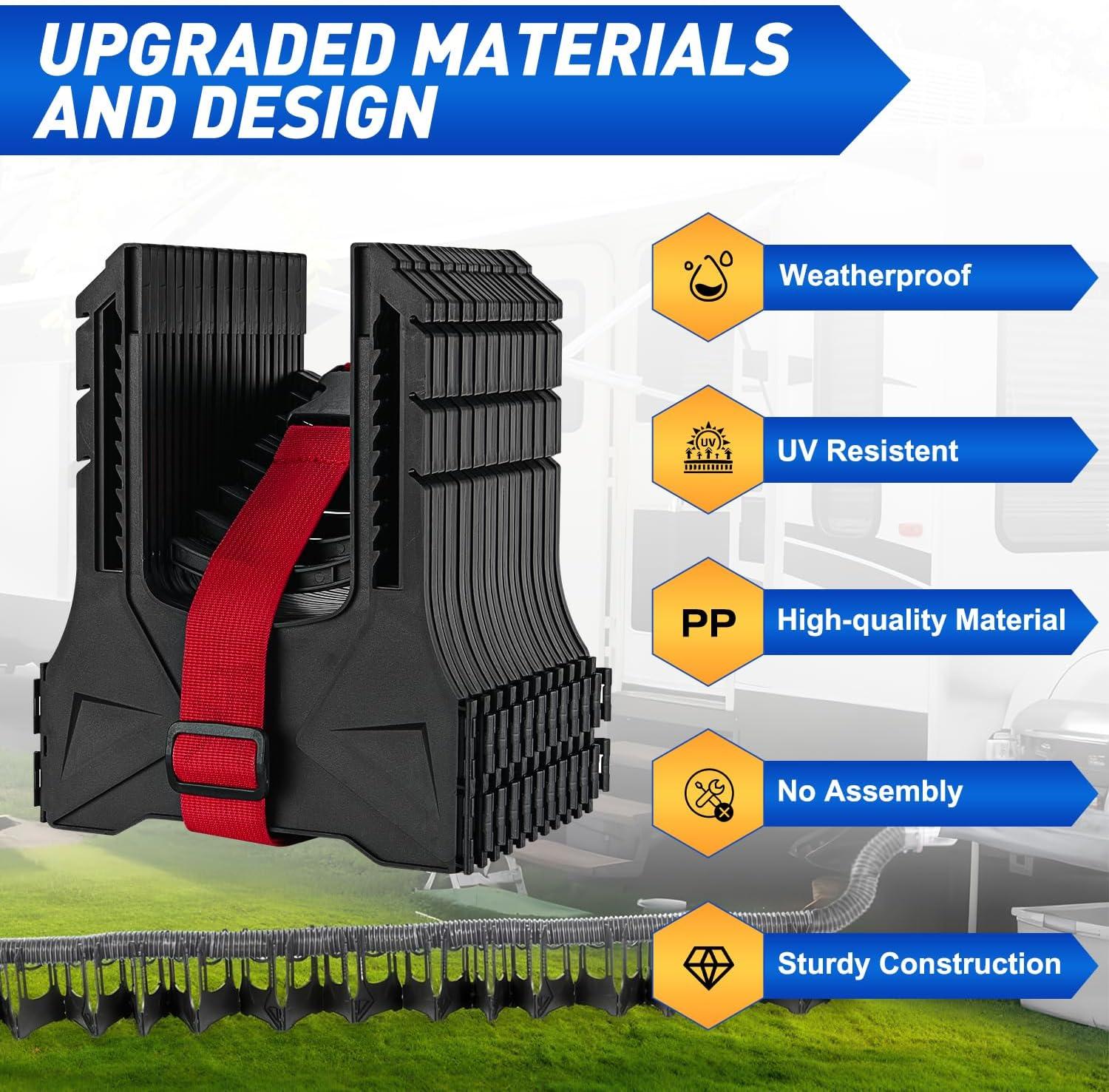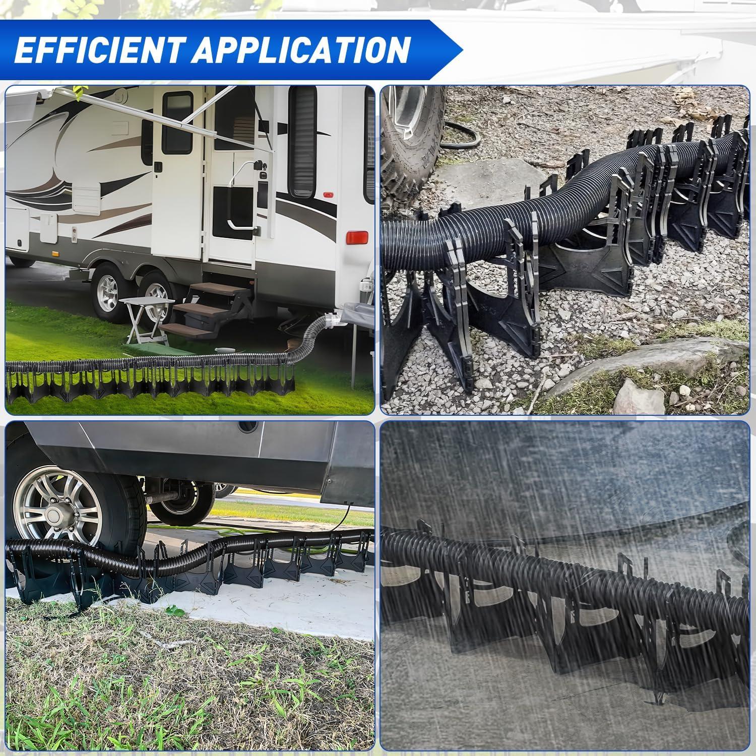 OBSTACLE AVOIDANCE & EFFECTIVE APPLICATION- The flexible foldable design allows this camping sewer hose holder to bypass obstacles precisely. It also adapts to various terrains, such as flat land, grass, sand and mud. Firmly supports the sewer hose for better drainage.