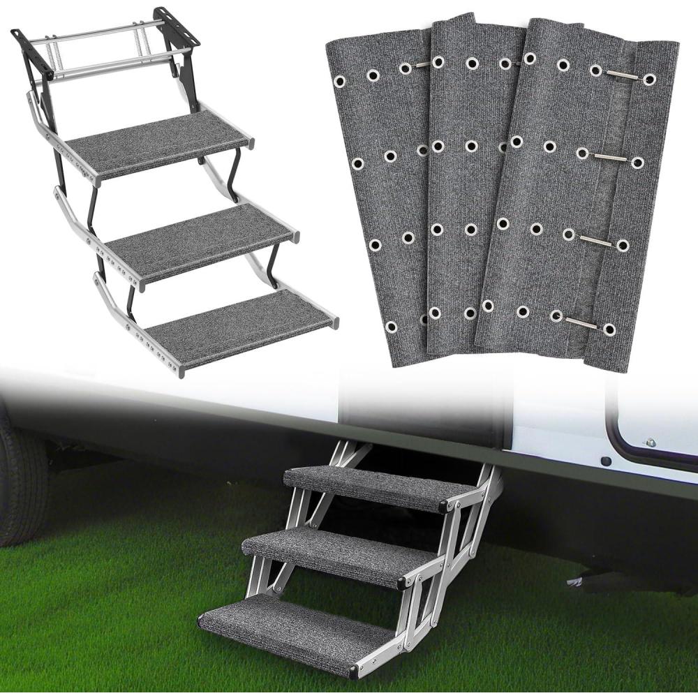 EASY INSTALLATION (NO TOOLS NEEDED) – Wipe the dust off the steps of the RV, stick one side of the hook-and-loop fastener to the other side of the camper step rug carpet, tear off the double-sided tape on it and stick it on the stairs – no tools required for a quick and easy setup