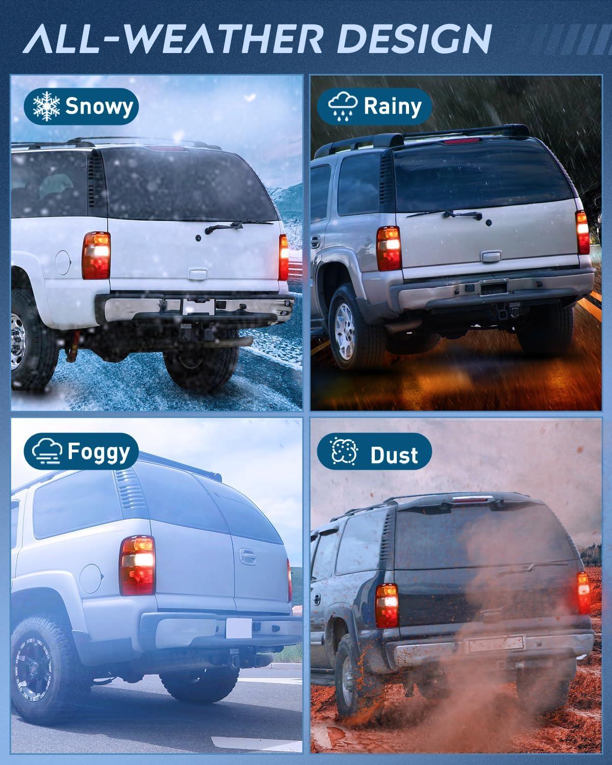 Durability: The high-impact housing withstands shock and vibration. With fully sealed silicon prevents environmental damages including freezing, foggy, fading, corrosion, and provides reliable service in sorts of weather conditions such as rain, snow, or dust storms, enabling your car looks better and drive safer