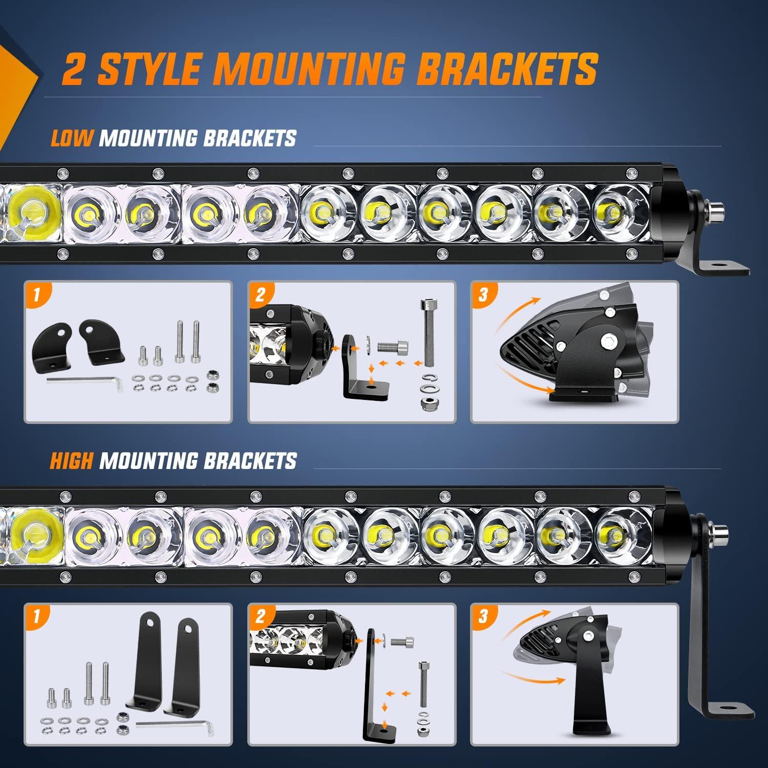 Nilight NI04-200W 1PC LED 41inch 200W Spot Flood Combo Single Row 19000LM Off Road 3D Fog Driving Roof Bumper Light Bars for Jeep Ford Trucks Boat, Black(White)