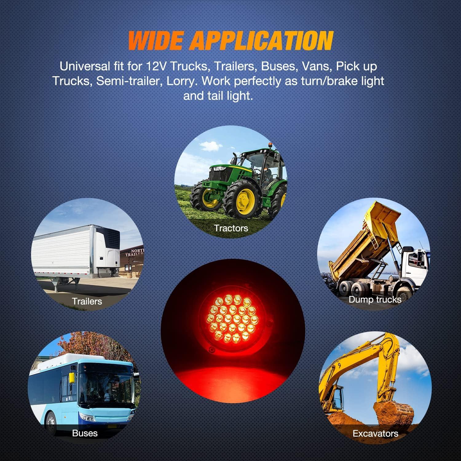 Universal Application: Work on 12V DC system, function as turn/Brake light, tail light for all kinds of trucks, trailers, tractors, semi-trailer, horse trailer, travel trailer, dump Truck, special vehicle, etc. Just make sure the hole size before your purchase