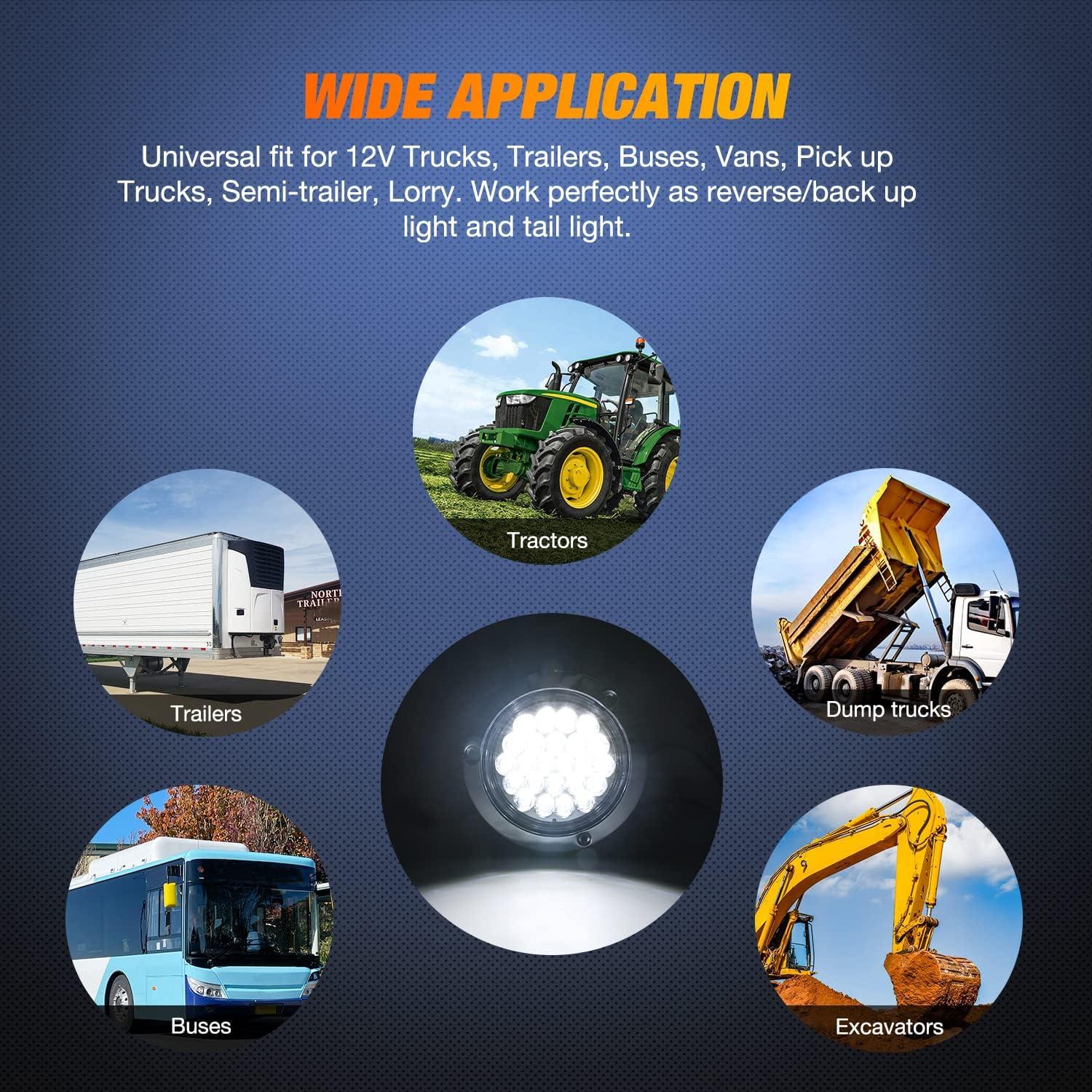 Universal Application: Work on 12V DC system, function as turn/Brake light, tail light for all kinds of trucks, trailers, tractors, semi-trailer, horse trailer, travel trailer, dump Truck, special vehicle, etc. Just make sure the hole size before your purchase