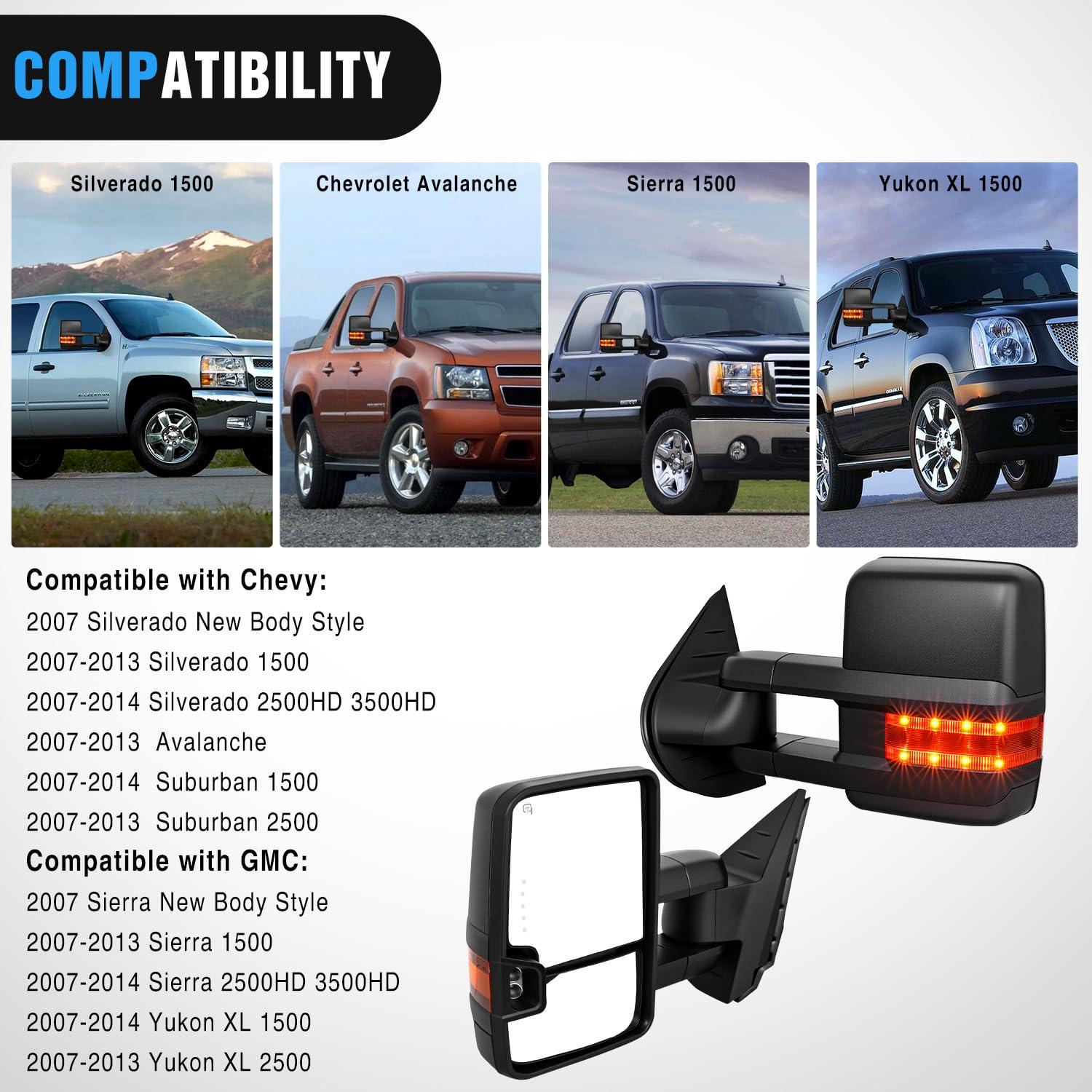 Points To Note: Please double check if the compatibility model we have listed matches your car, and also be aware of our towing mirror does not have power heated and turn signals light. If your vehicle requires these features, this towing mirror is not suitable