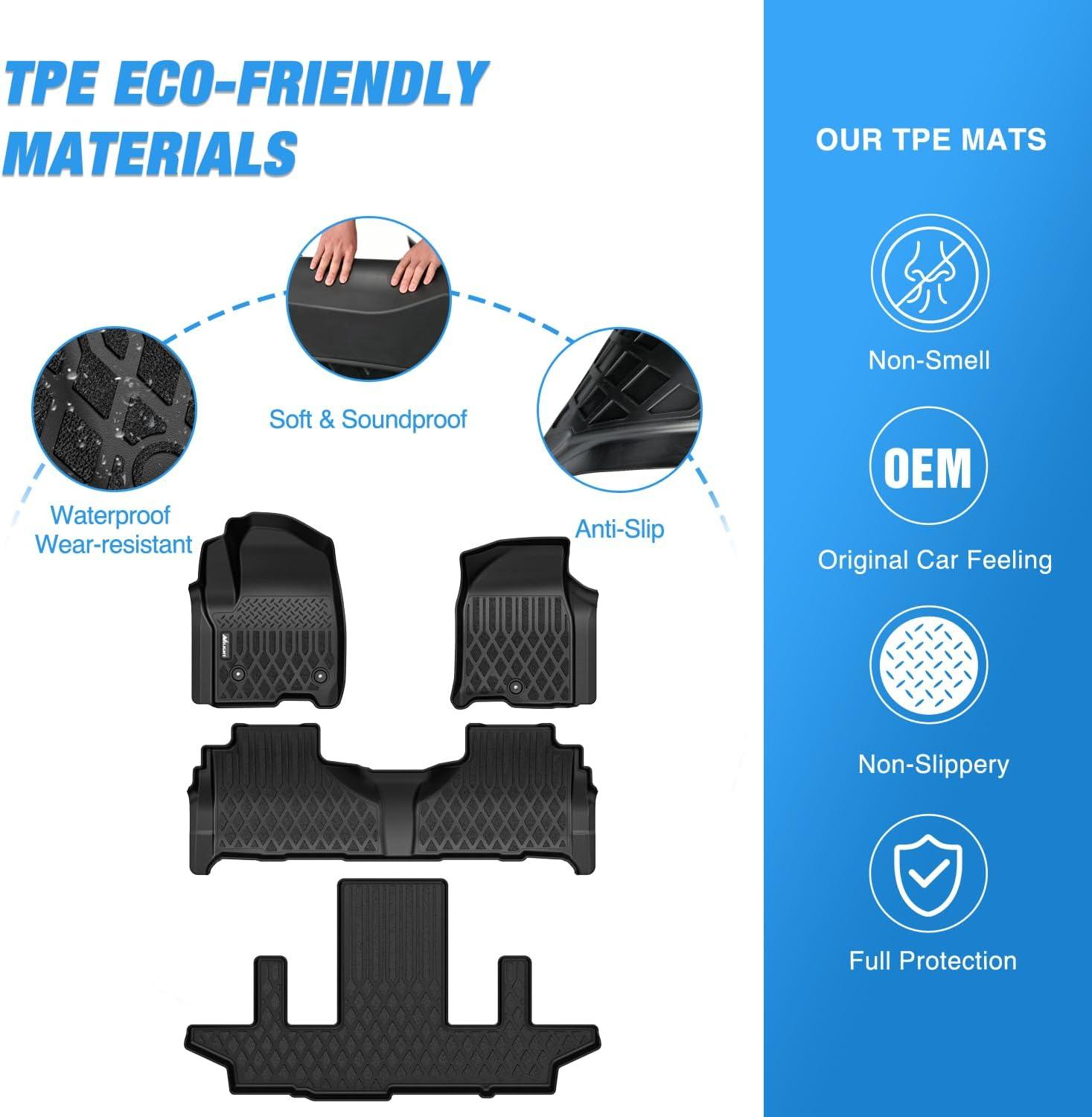 DIRECT FIT – These custom made floor mats are perfectly tailored to compatible with 2021-2025 Chevrolet Tahoe/GMC Yukon/Cadillac Escalade with 2nd Row Bench Seating.
