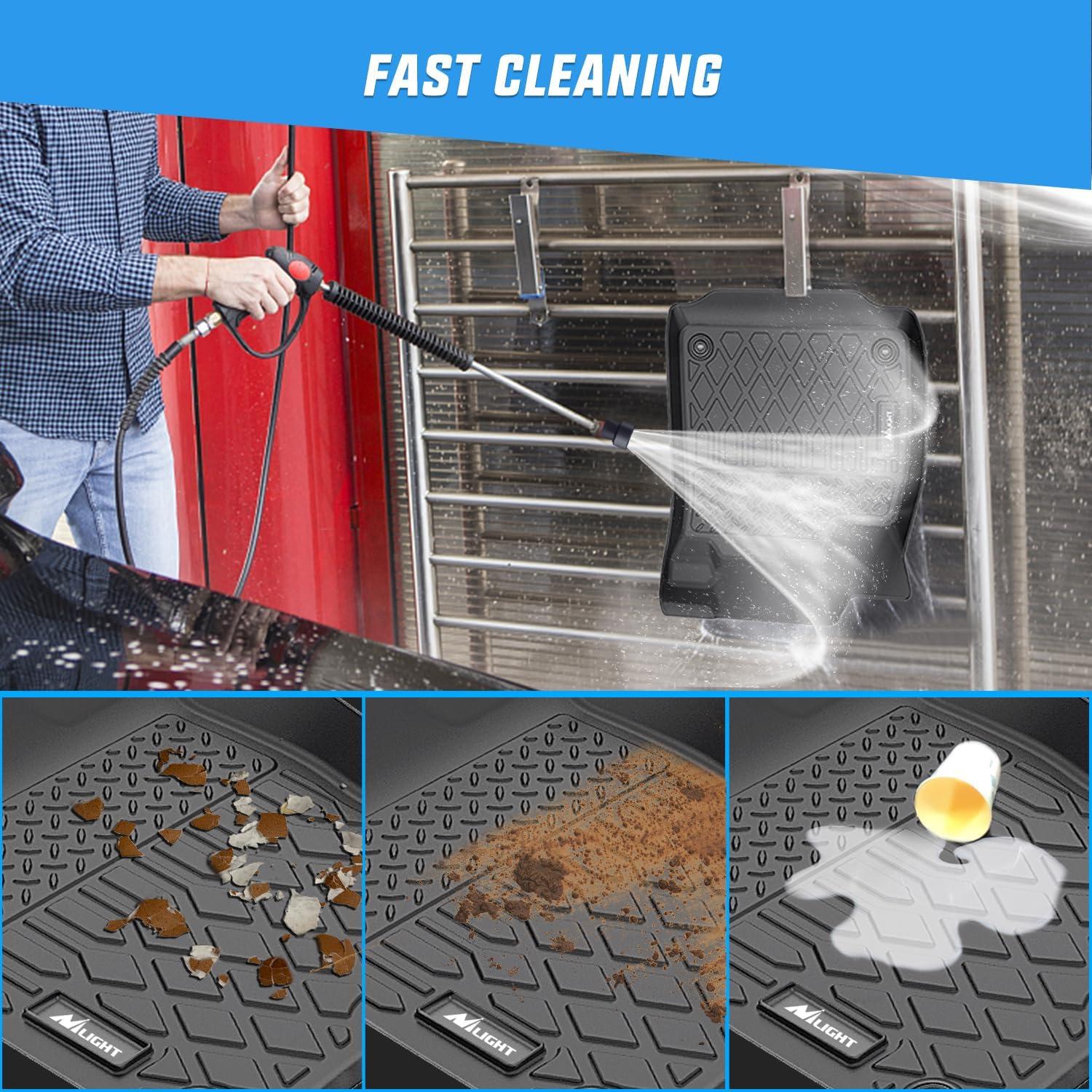 FAST CLEANING – You can wash off messes that end up on your floor mats in seconds with soap and water. In some cases, a simple spray of the hose will do the trick.