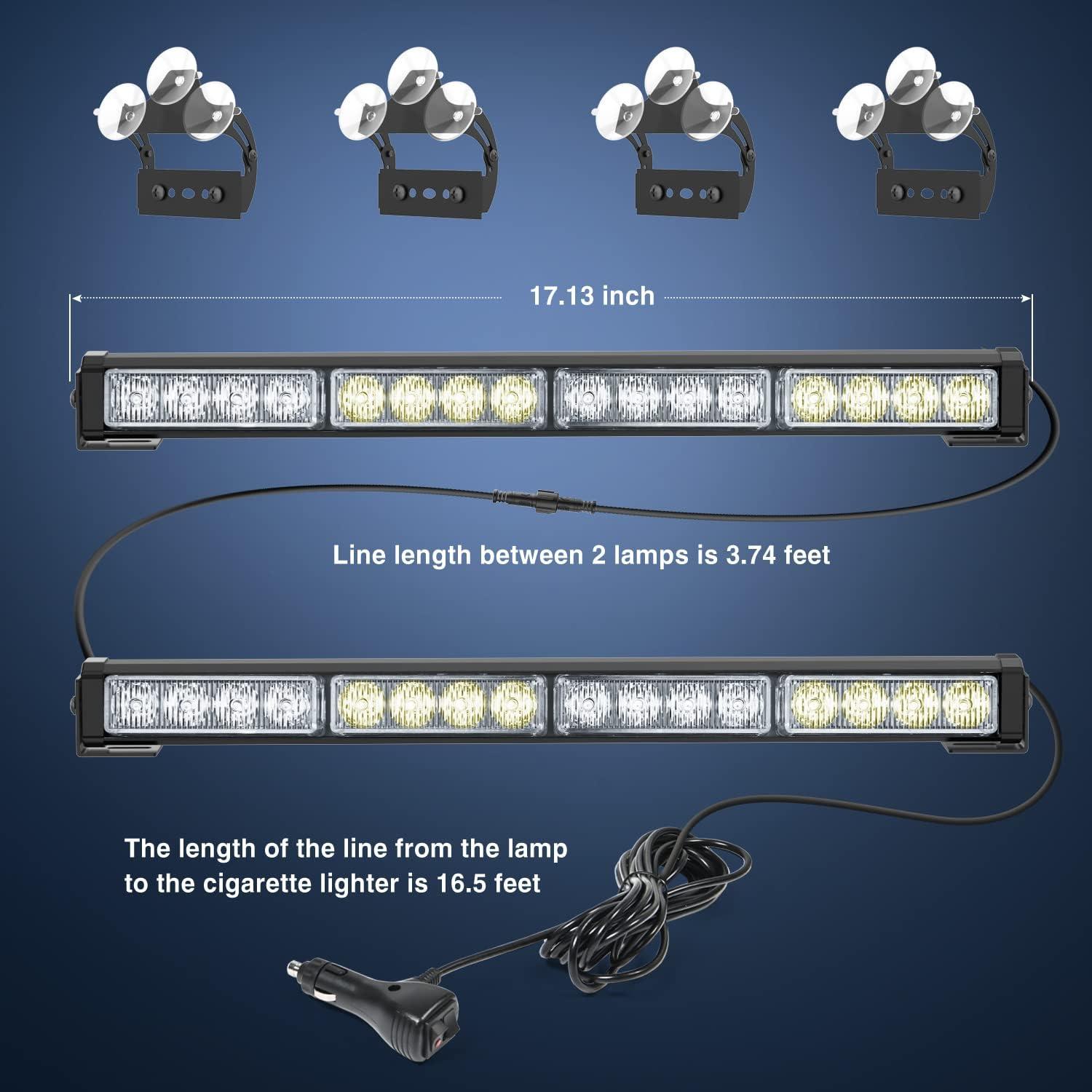 Cigar Lighter Power Cord: Comes with 16.5FT heavy duty power cord from light to cigarette lighter. Wire length between 2 lights is 3.74FT. Support power input from 12V DC to 24V DC. Dual switch design for power on/off and patterns switching. Built-in last pattern recall function