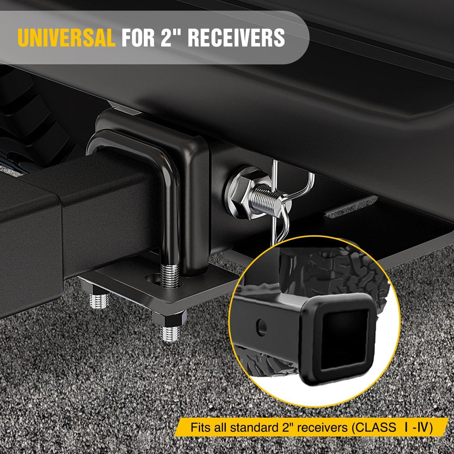 Wide Application: Adjustable fit and high quality materials ensure a quiet and stable towing/hauling experience.Suitable for Class I, II, III, or IV (1, 2, 3, or 4) 2 inch trailer hitches, also for all kinds of off-road vehicles, trailer hitch receivers, trailer ball mounts, bike racks, hitch racks, etc