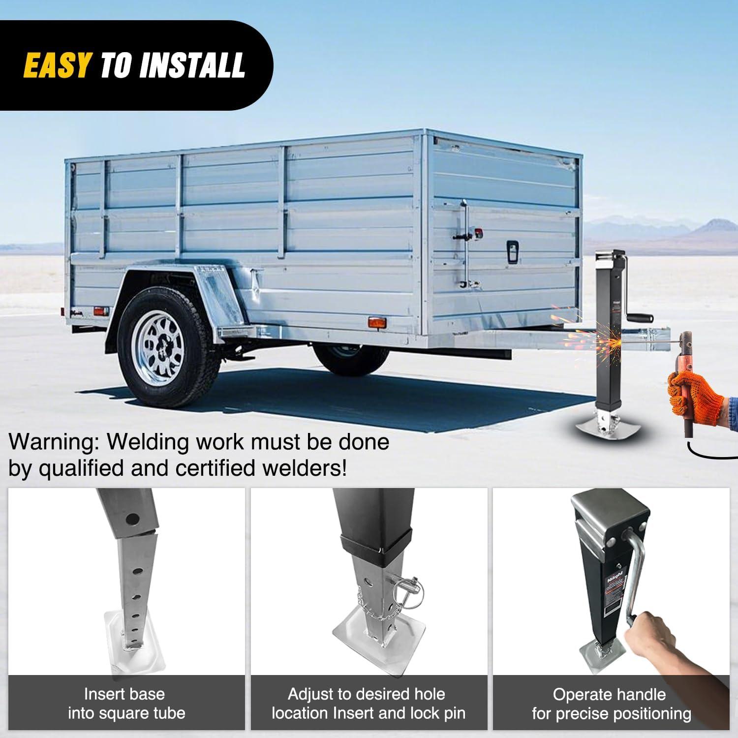 Nilight Trailer Jack 8000 LBS Weld On Heavy Duty Trailer Jacks Alloy Steel Square Direct Utility Trailers Tongue Jack 14 Inch Lift Adjustable Drop Leg RV Jack for Boat RV Camper Horse Yacht Trailers(14″ 8000lb Weld-On Trailer Jack)